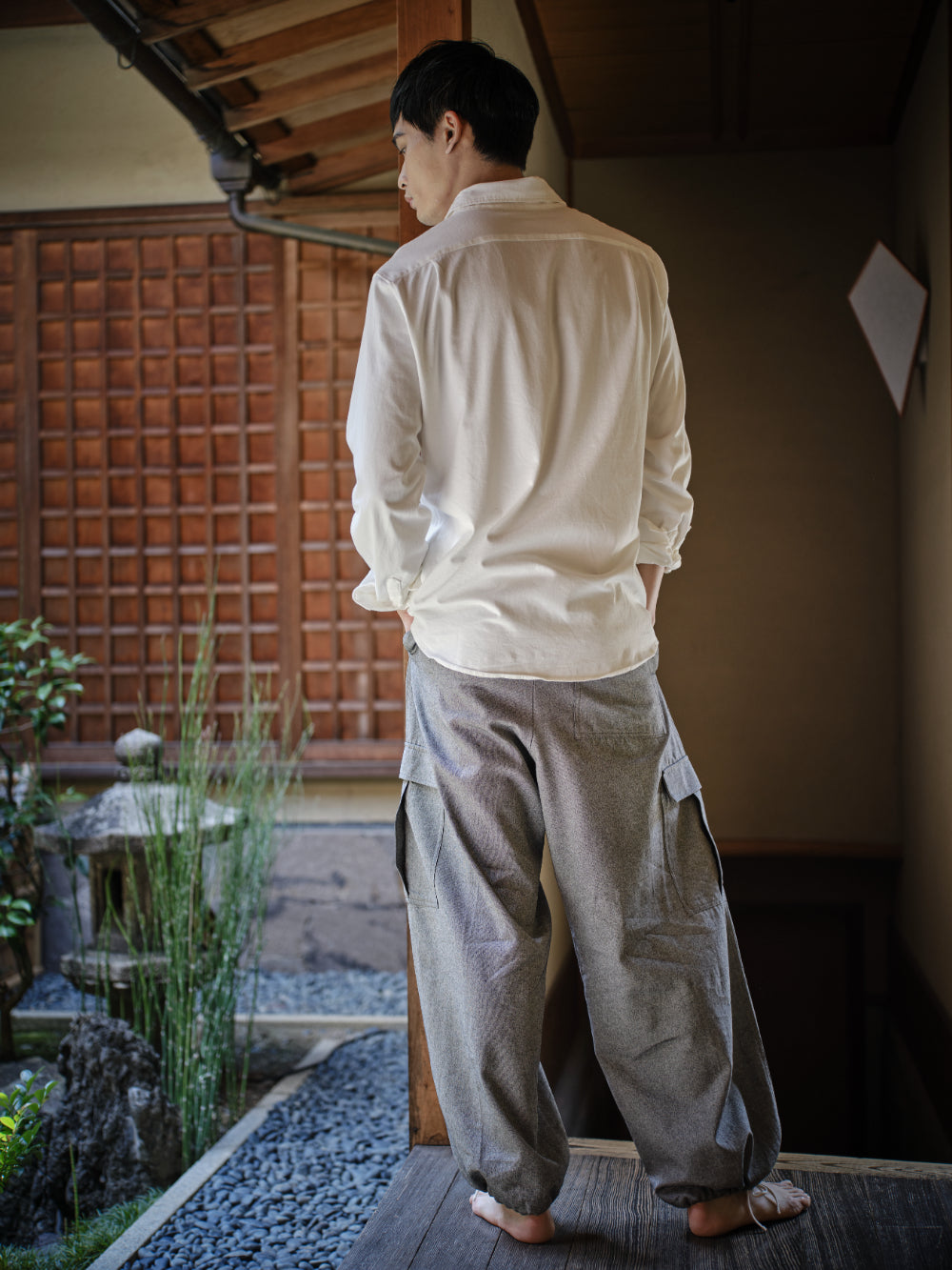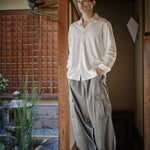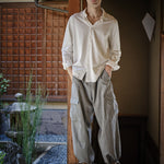 Cargo pants made of a mixture of washi paper and wool. Made of a thin material, they are perfect for the high season. They are an oversized free size, but can be worn unisex.