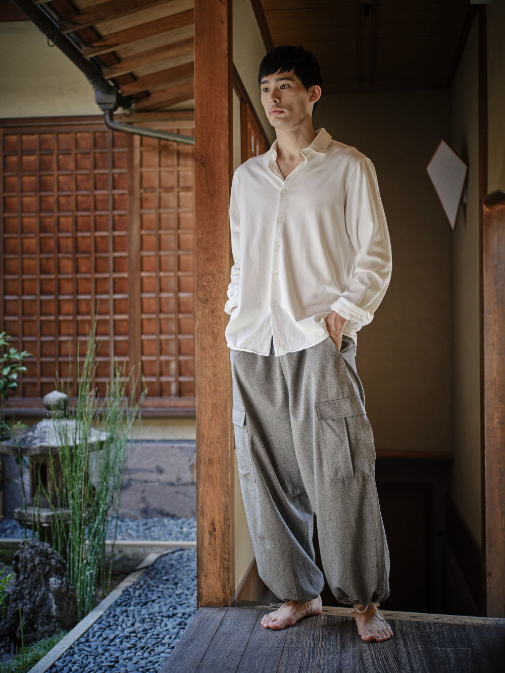 Washi Wool Cargo Trousers(UNISEX) / GRAY/ F