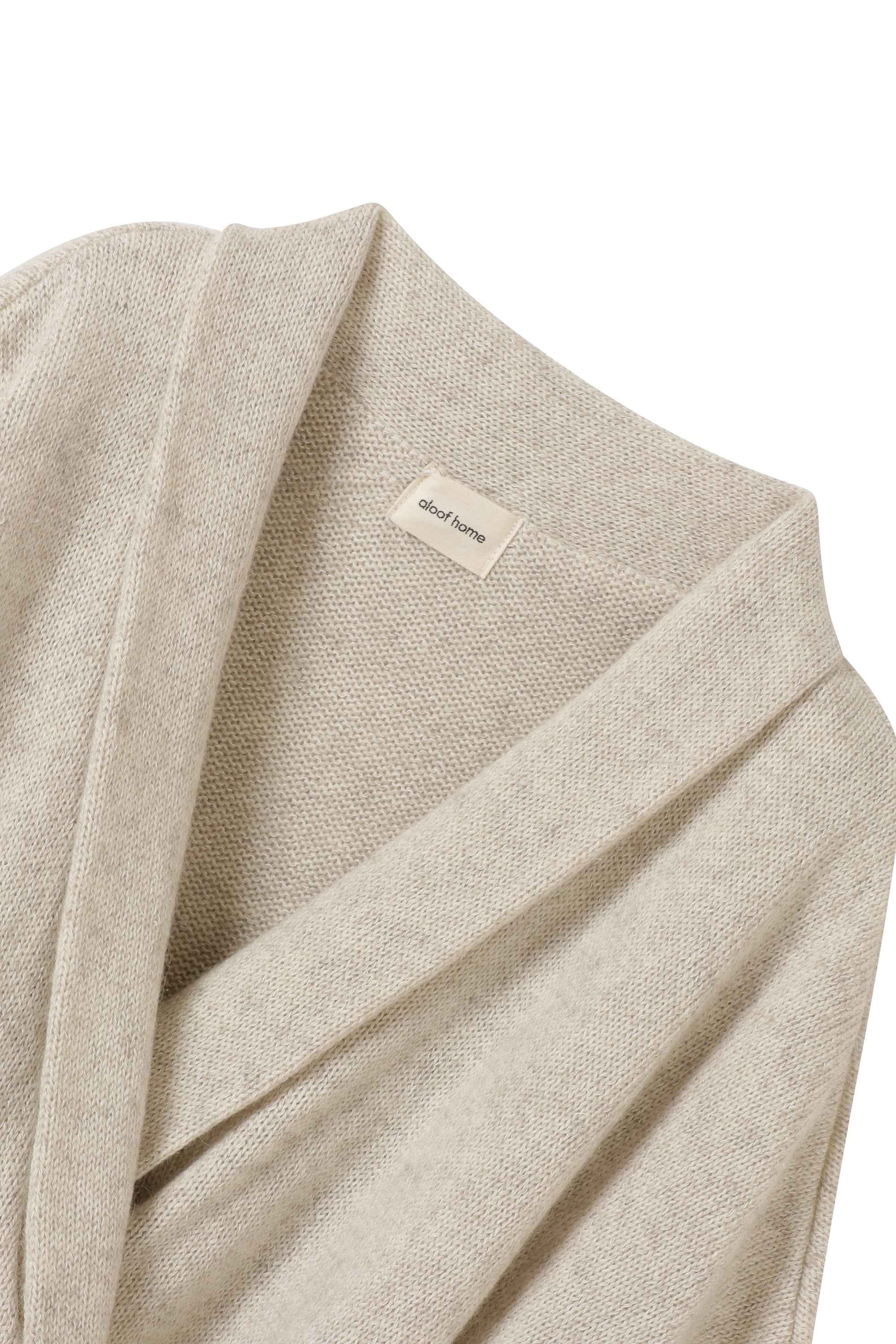A knitted jacket made from a blend of yak, which is comparable in warmth, lightness, and softness to cashmere, and washi paper yarn.
