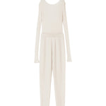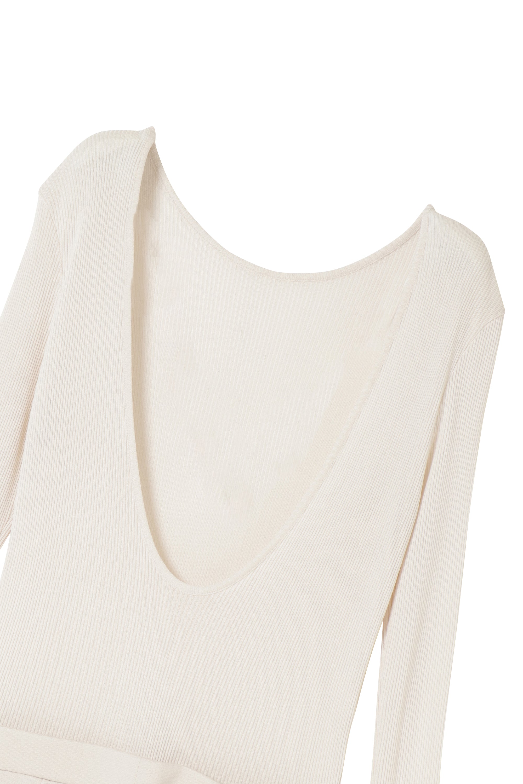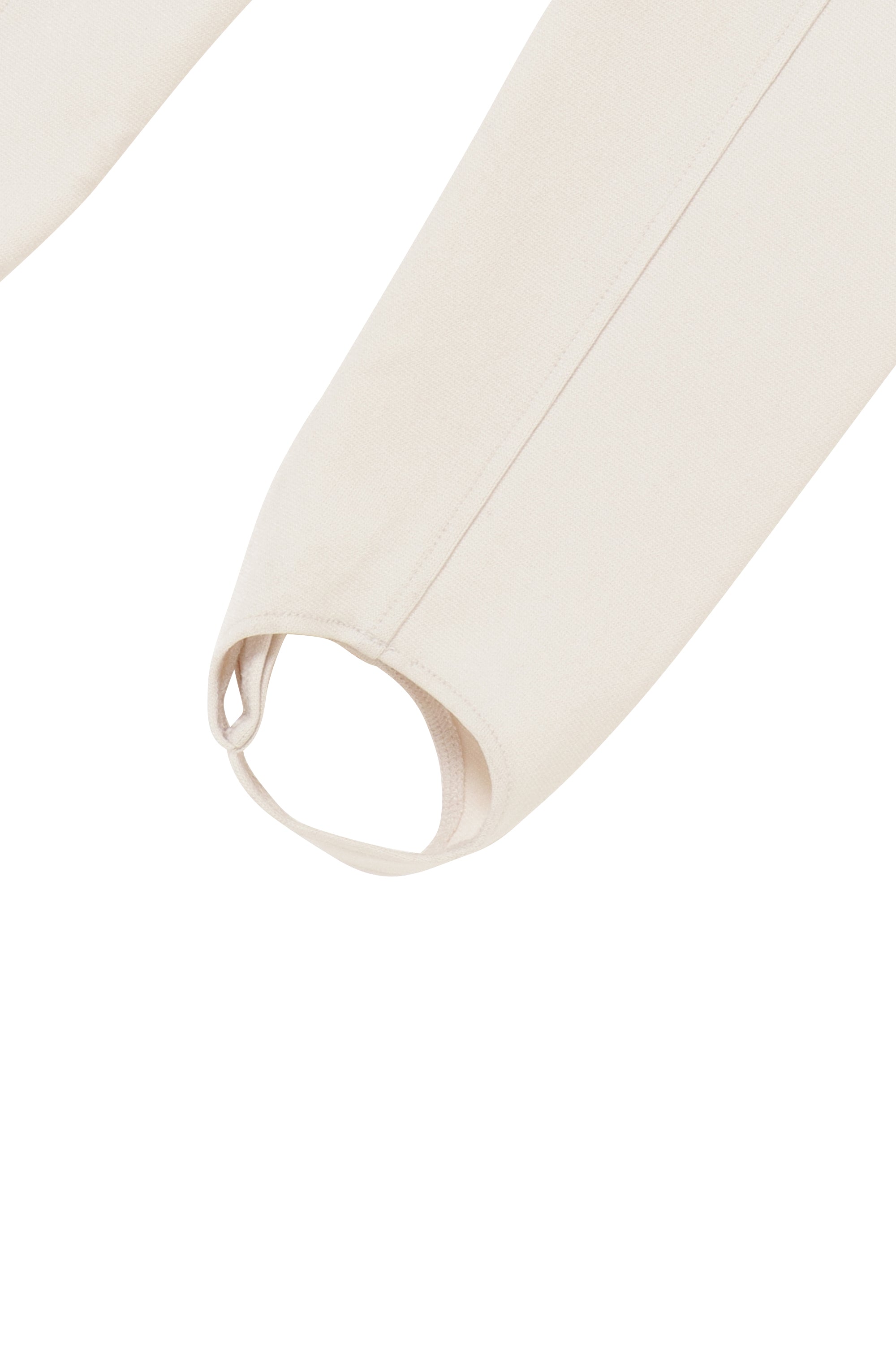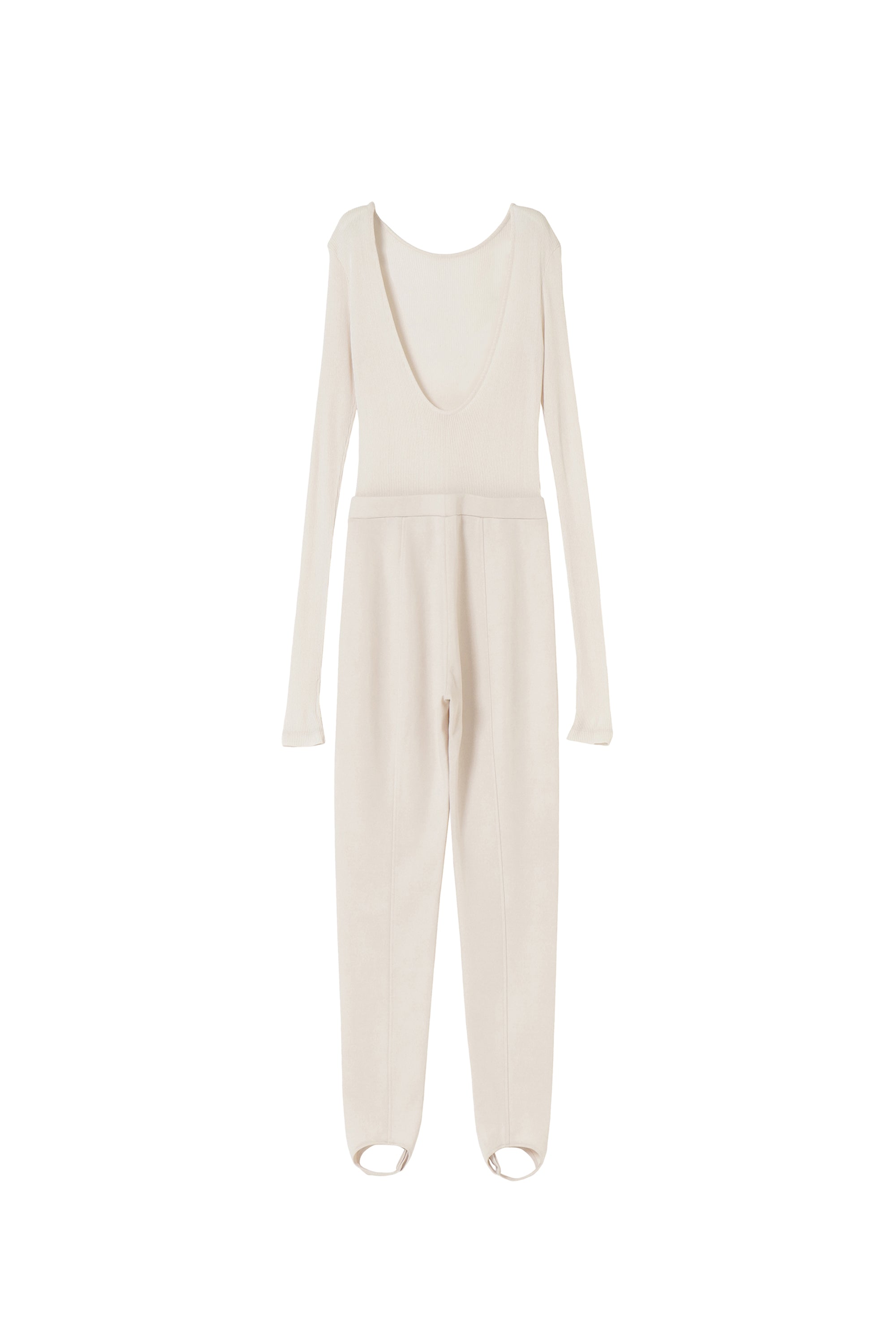 This all-in-one type combines a tight full-sleeve shirt with slim slacks. The bottoms are designed with the slim slacks in mind, allowing for movement, and feature a design line at the center crease for an elegant look. This is a top-selling item from LITA, allowing you to enjoy a complete yoga style with just one piece.