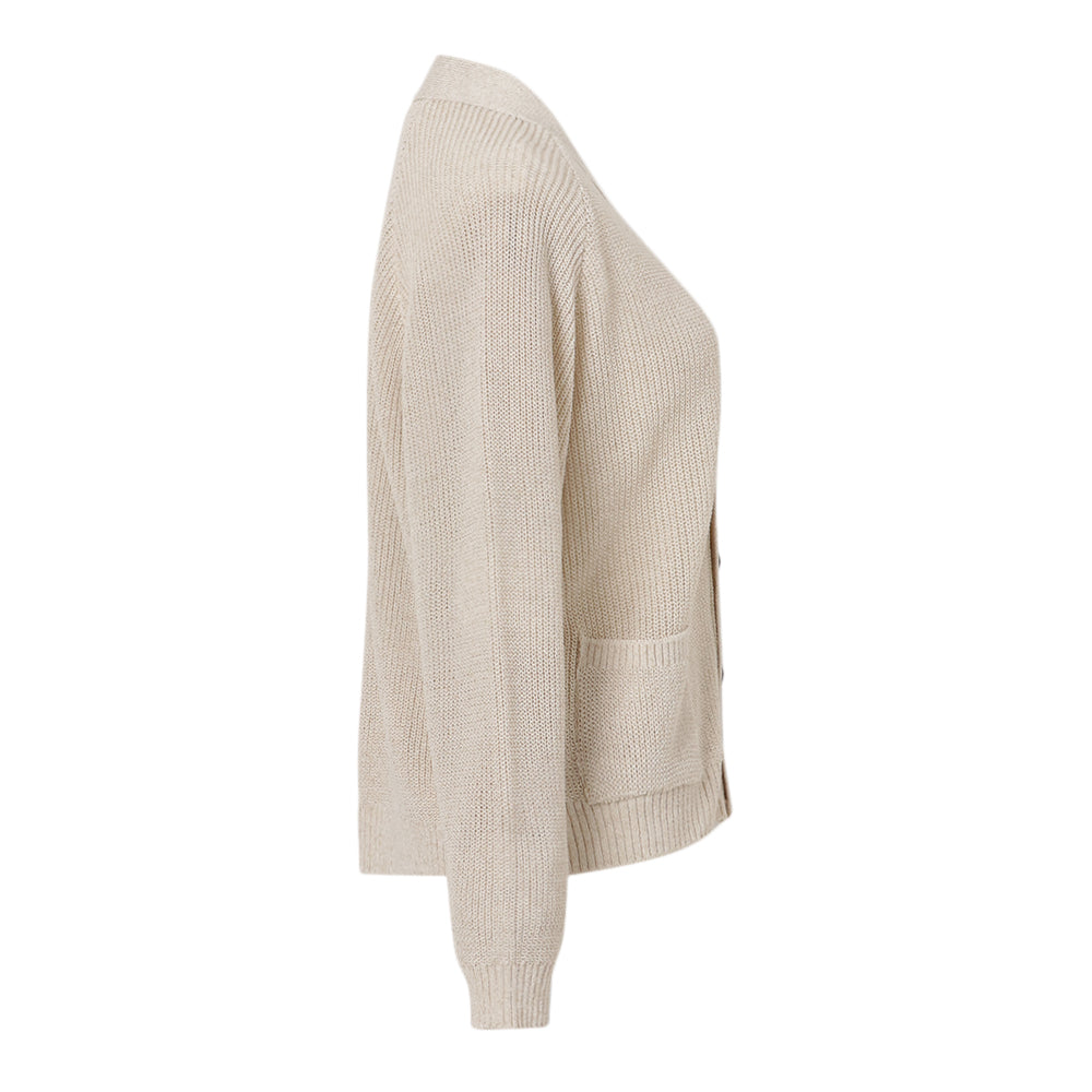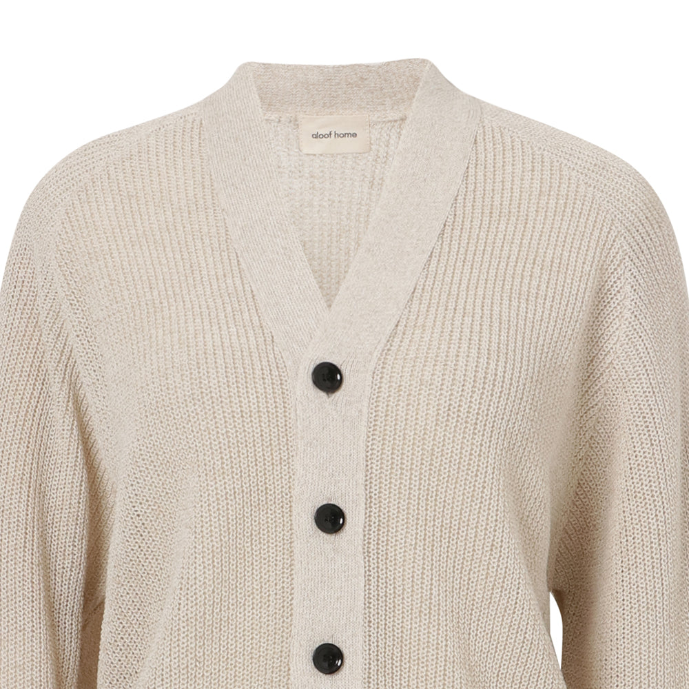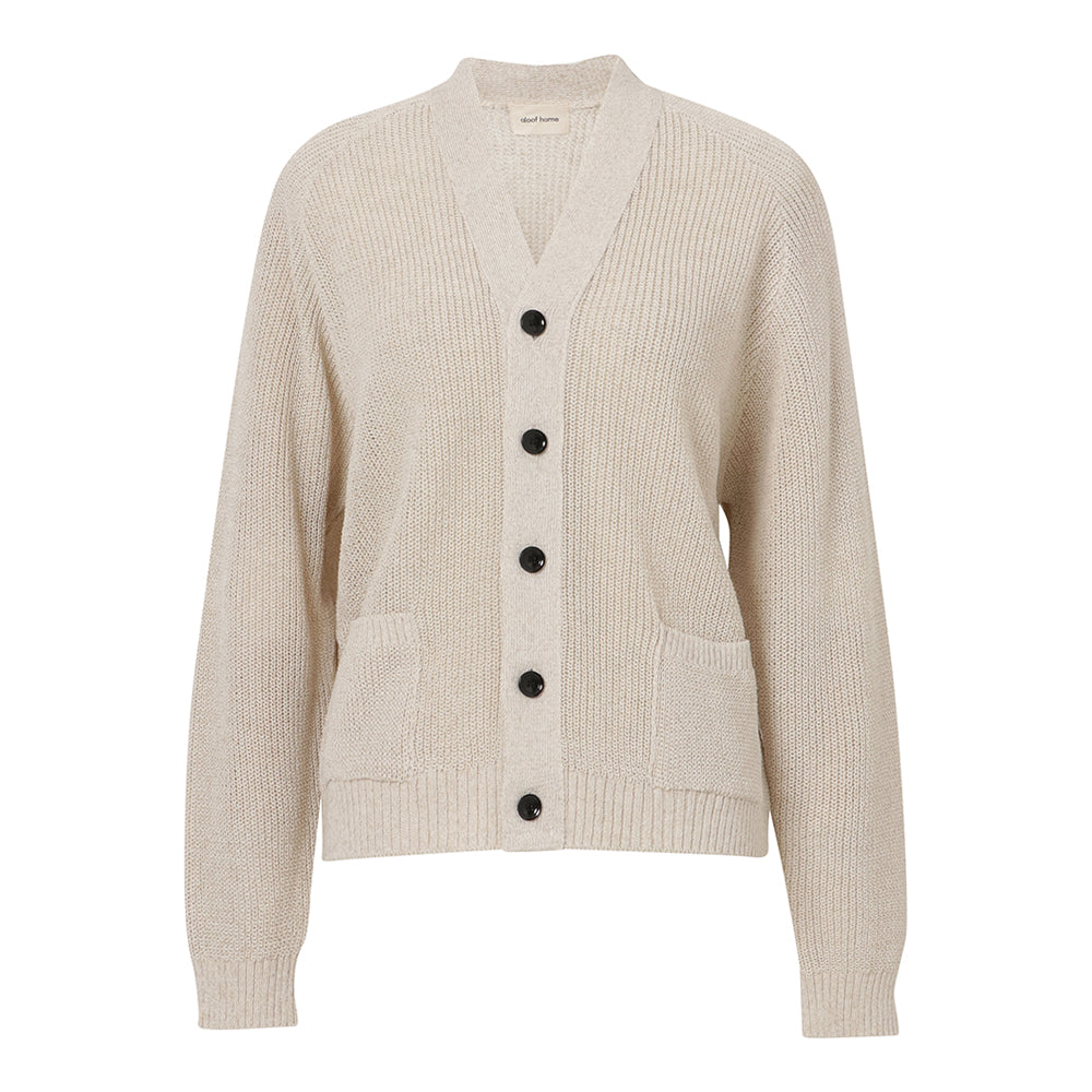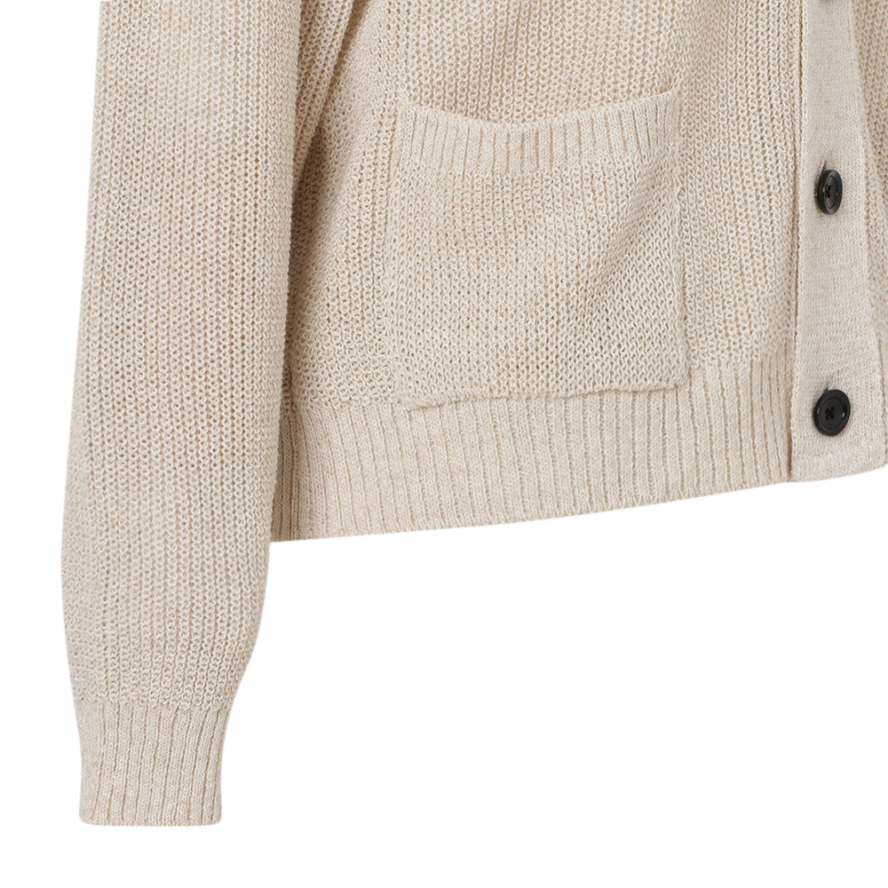 This mid-gauge garment is easy to wear as a jacket or as an inner layer in autumn and winter, and its soft texture and natural color make it a gender-neutral item.