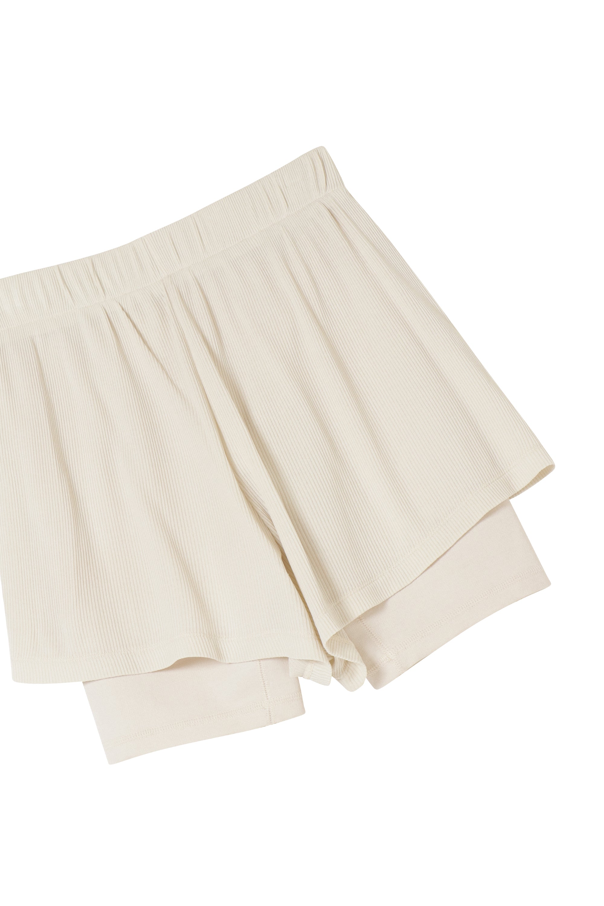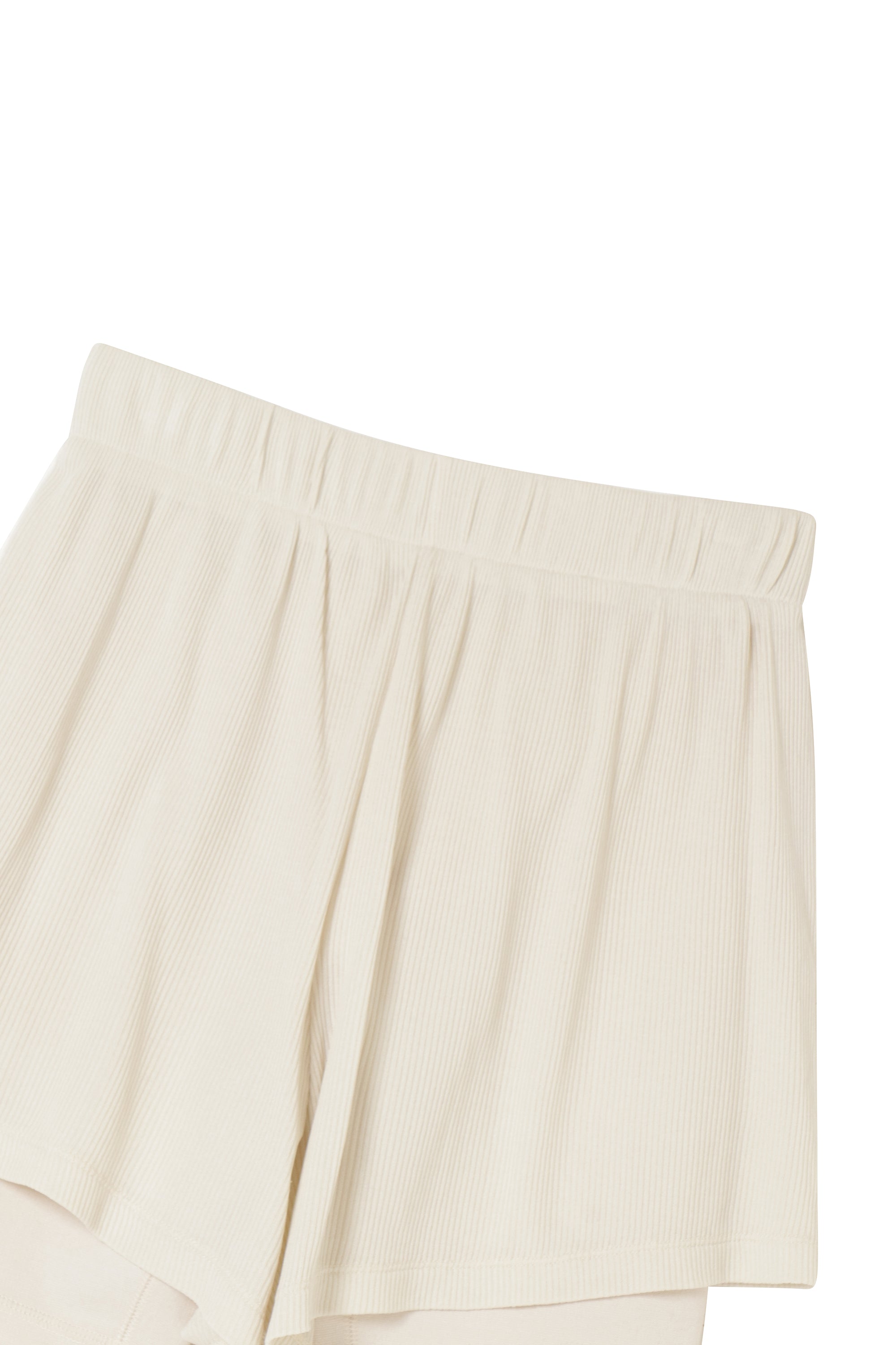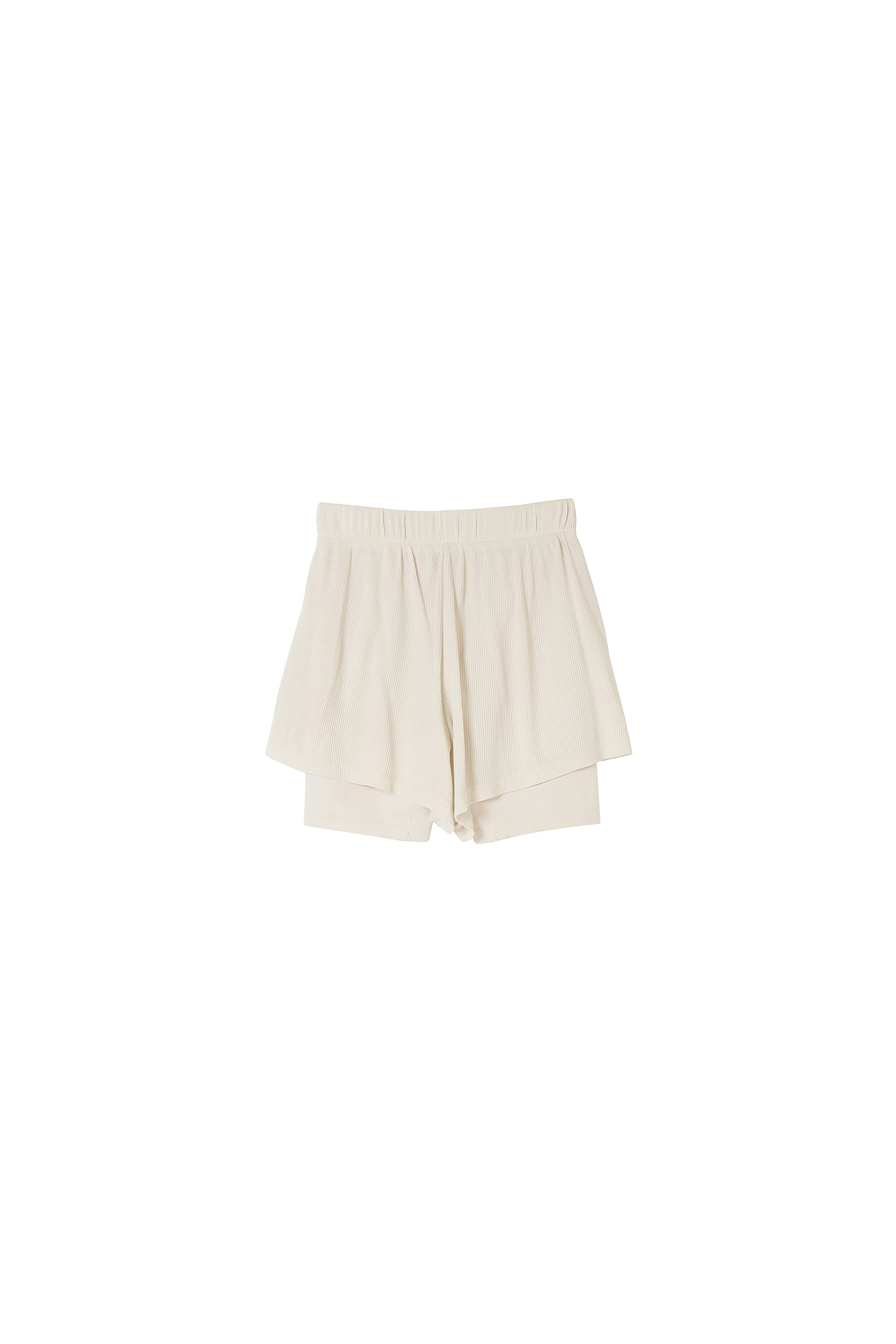 The IN is a tight and long leggings, and the OUT is a voluminous short layered design. Those who are concerned about the line of their buttocks can wear it without worrying because there is an OUT.