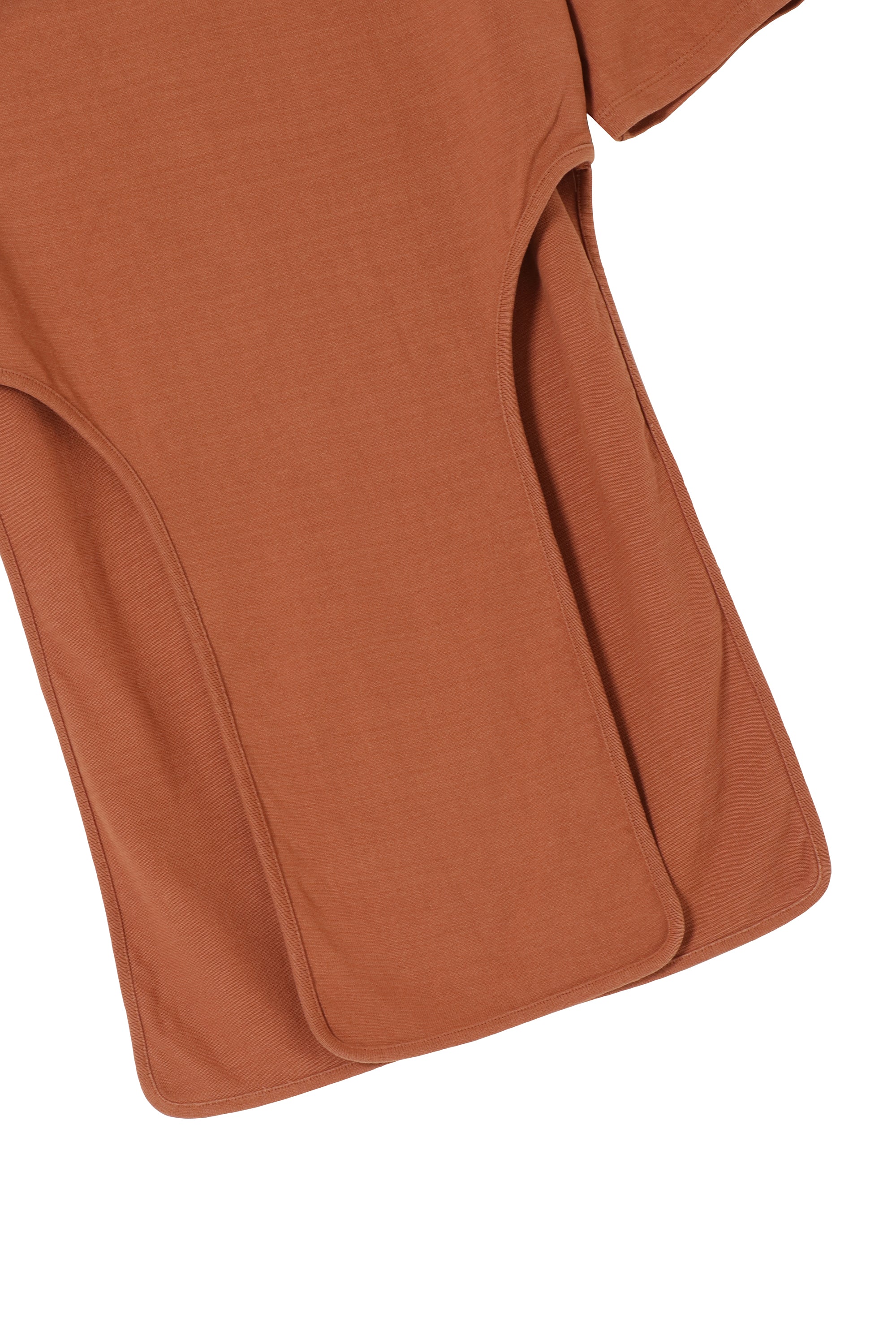 The long length of the T-shirt can easily be heavy, but by adding a slit all the way up to the waist, it expresses lightness, and by changing the cut lines of the slits at the front and back, the tight silhouette of the T-shirt, which can often be simple, has been upgraded to something more nuanced, making it more suitable for everyday wear.