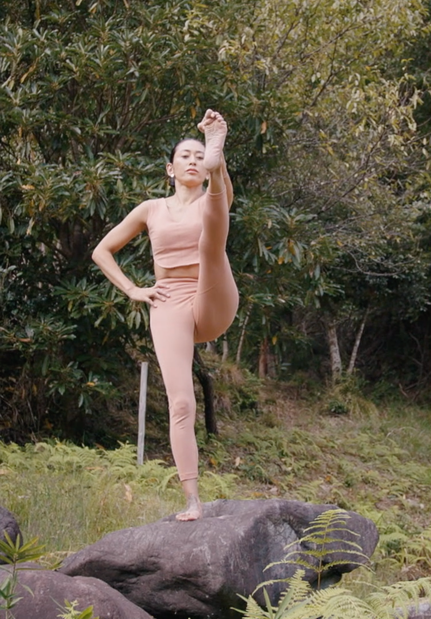 These classic leggings have a wider belt in the front and a slit in the back, giving them a chic look and a design that is not too sportswear-like.