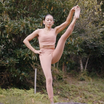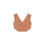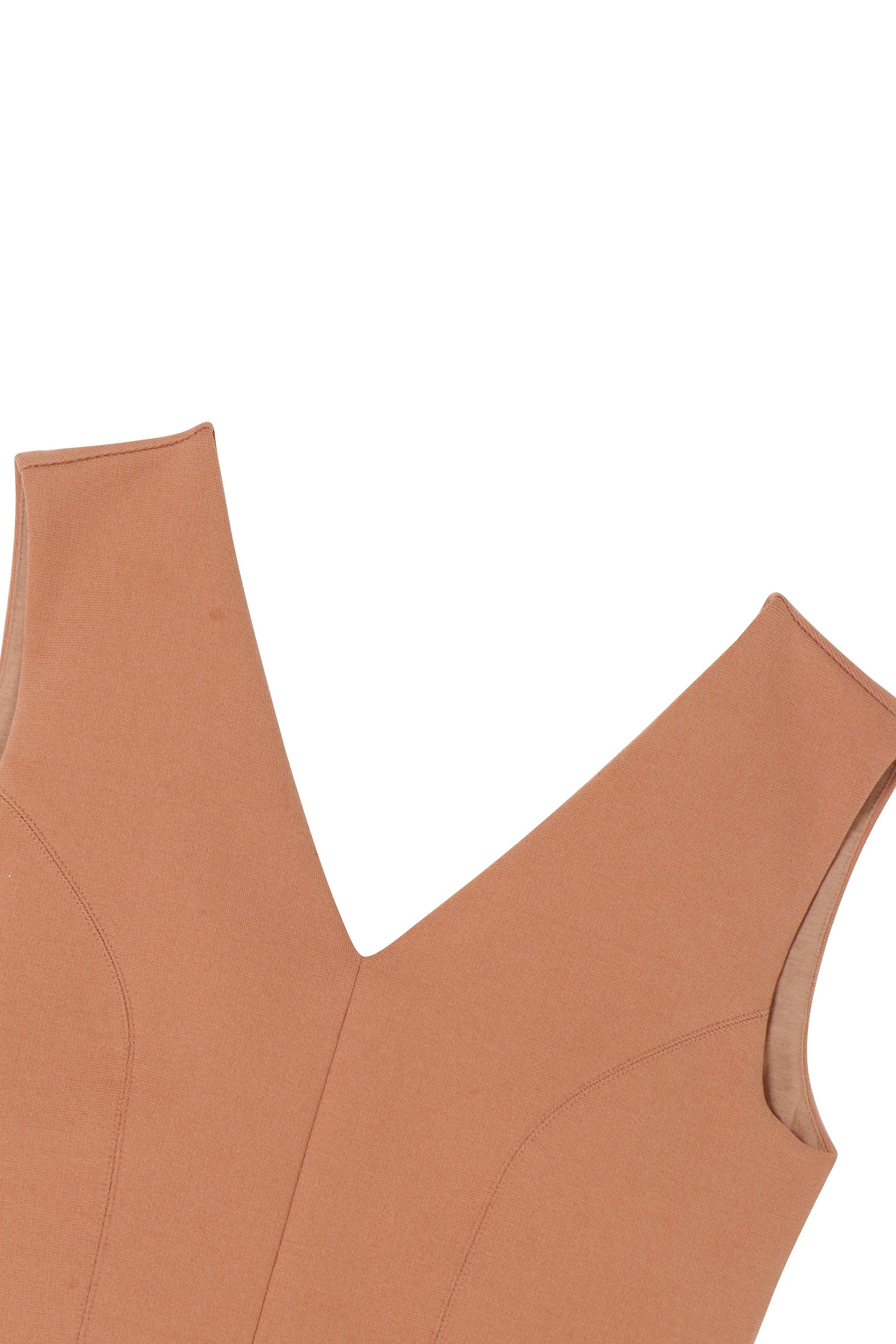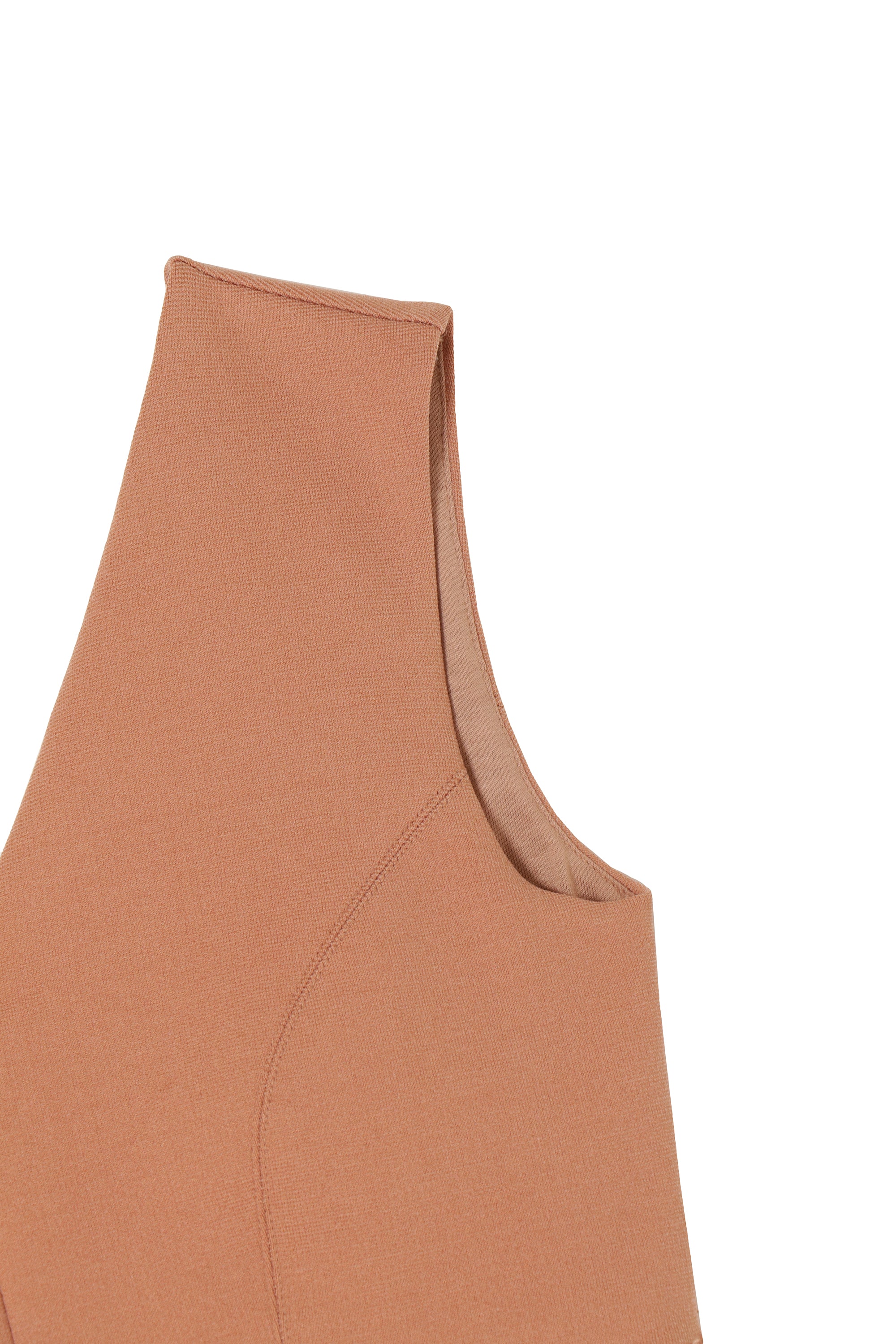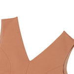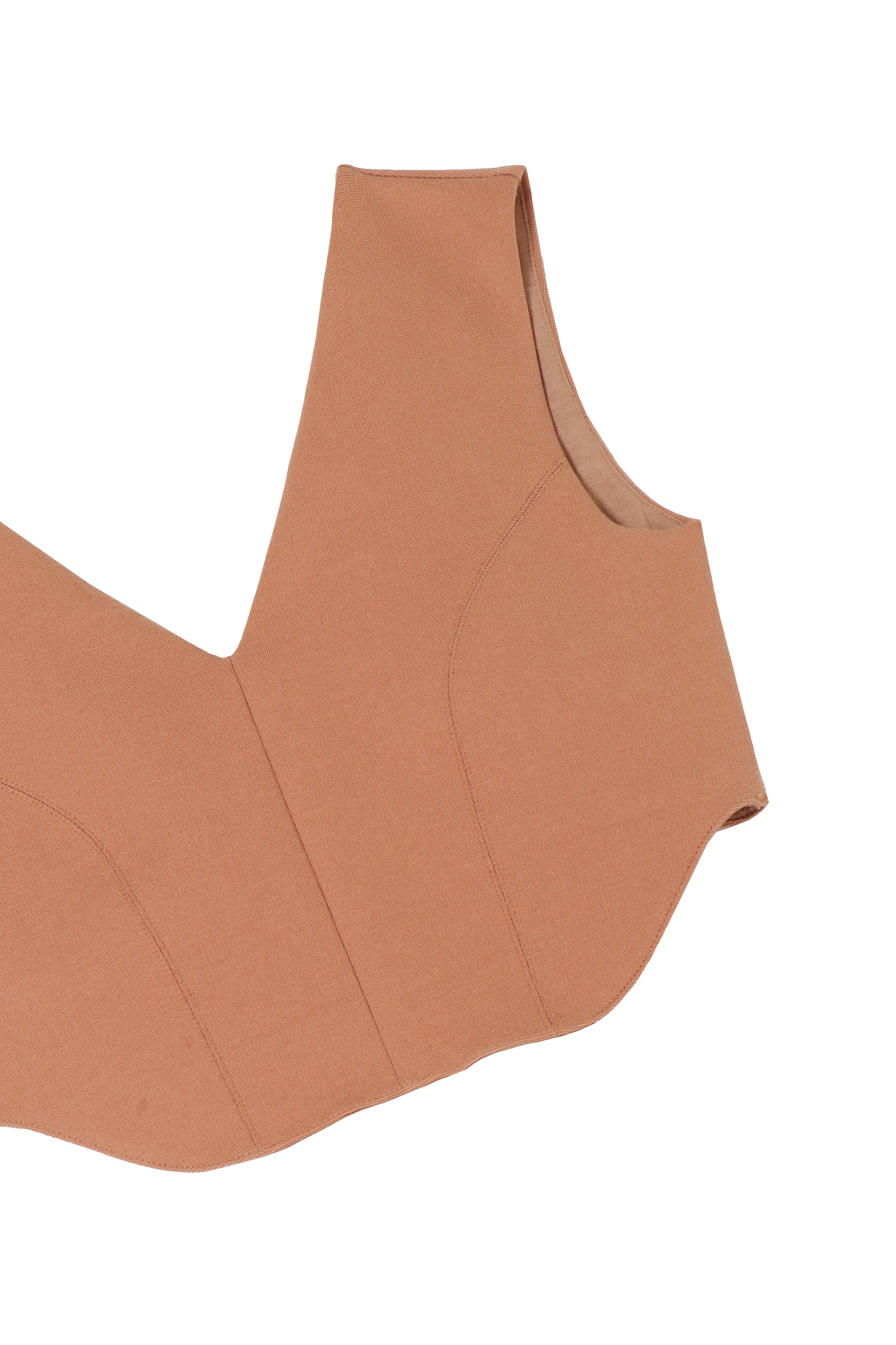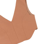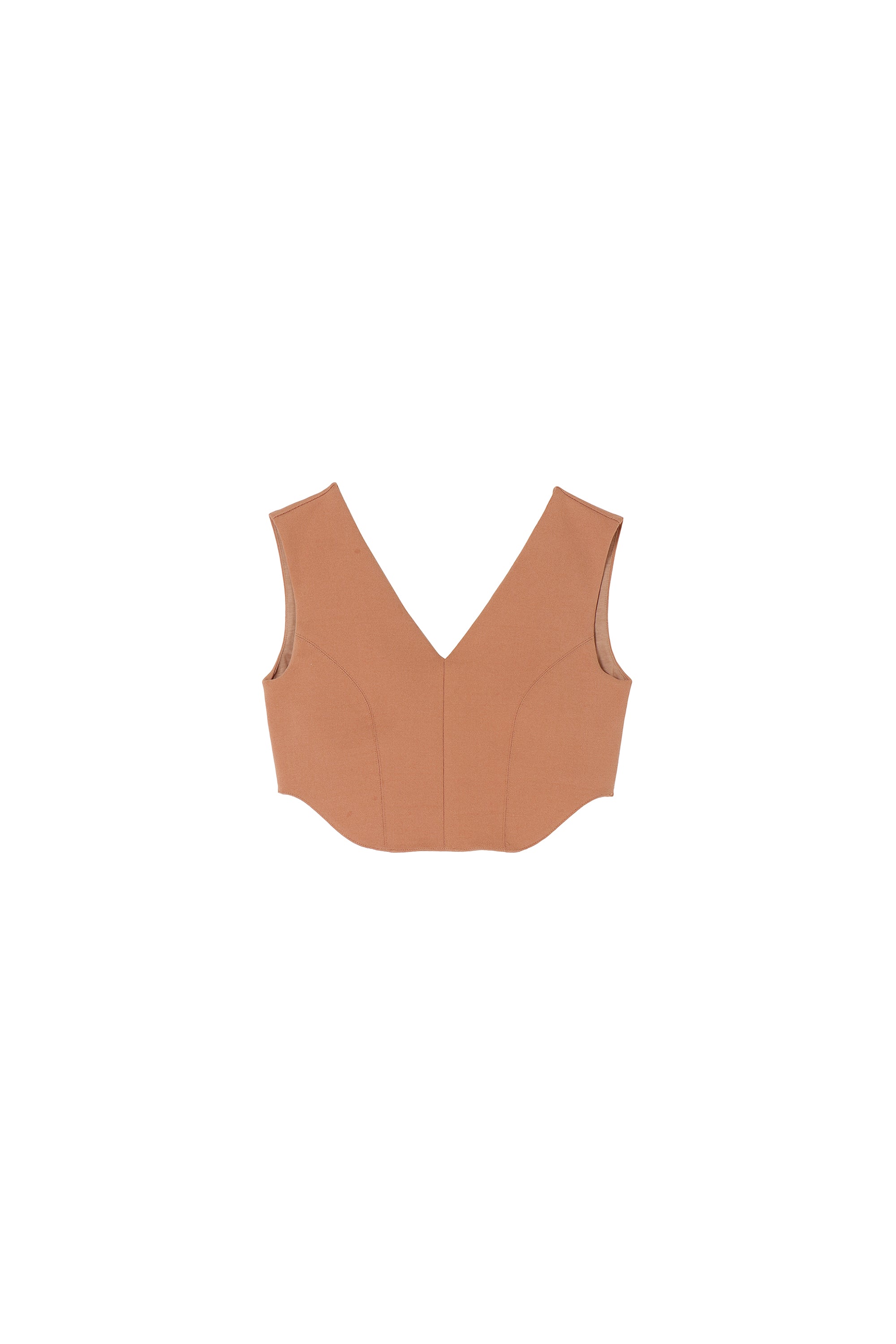 This simple and unique long-length bra top has darts on the princess line and is designed to avoid the hemline and pelvis, creating a sleeker impression.