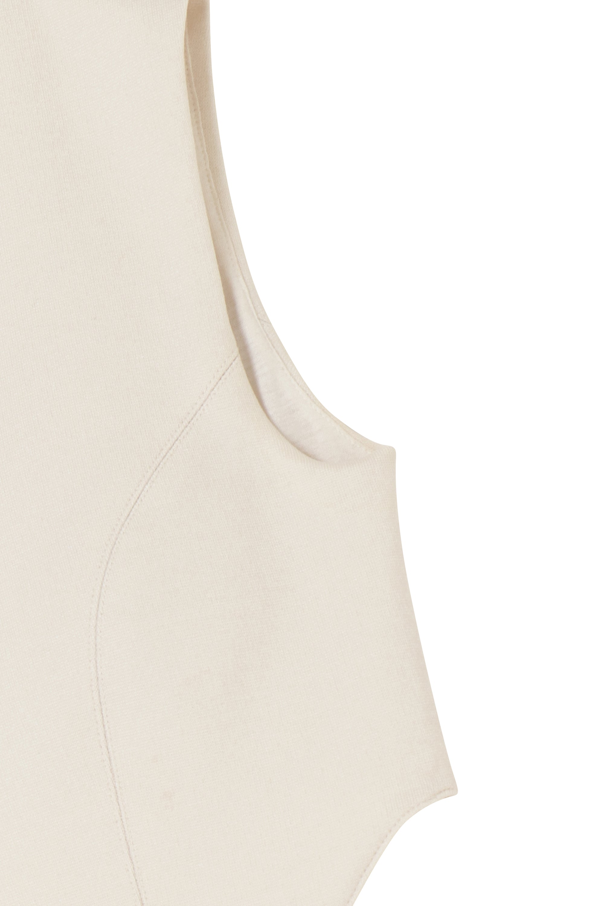 The V-neck and wide shoulders create a three-dimensional design that is not often seen in sportswear.