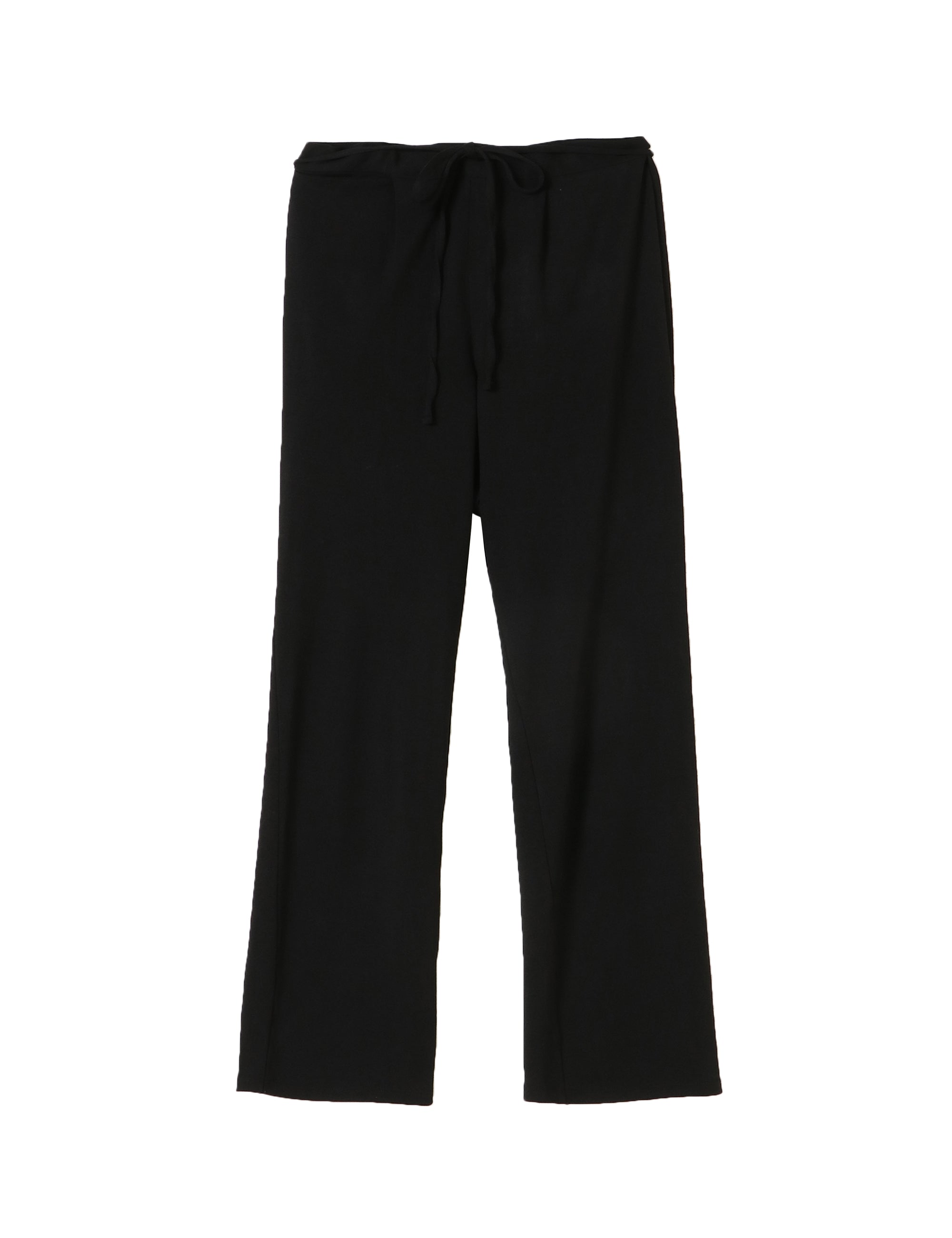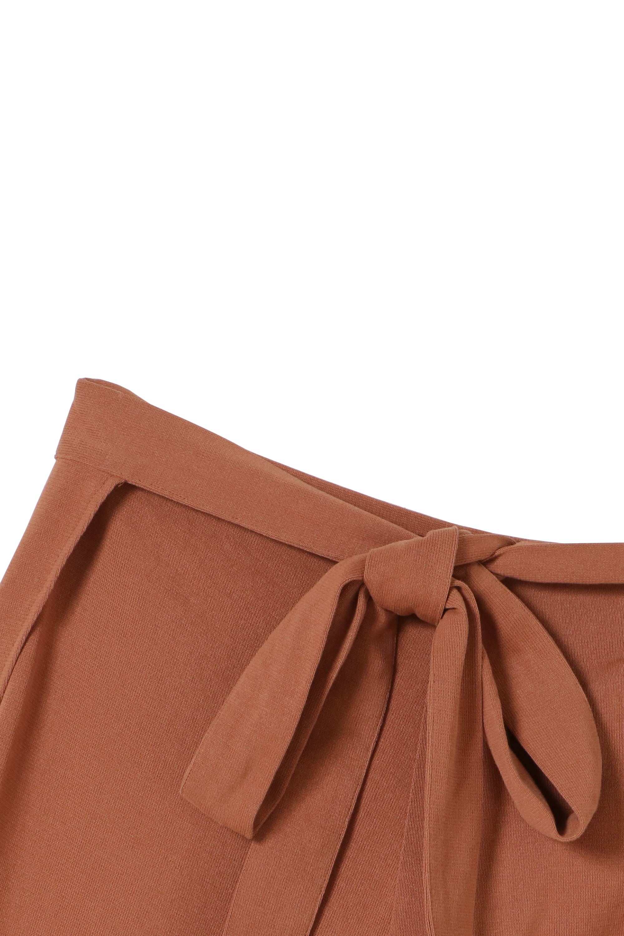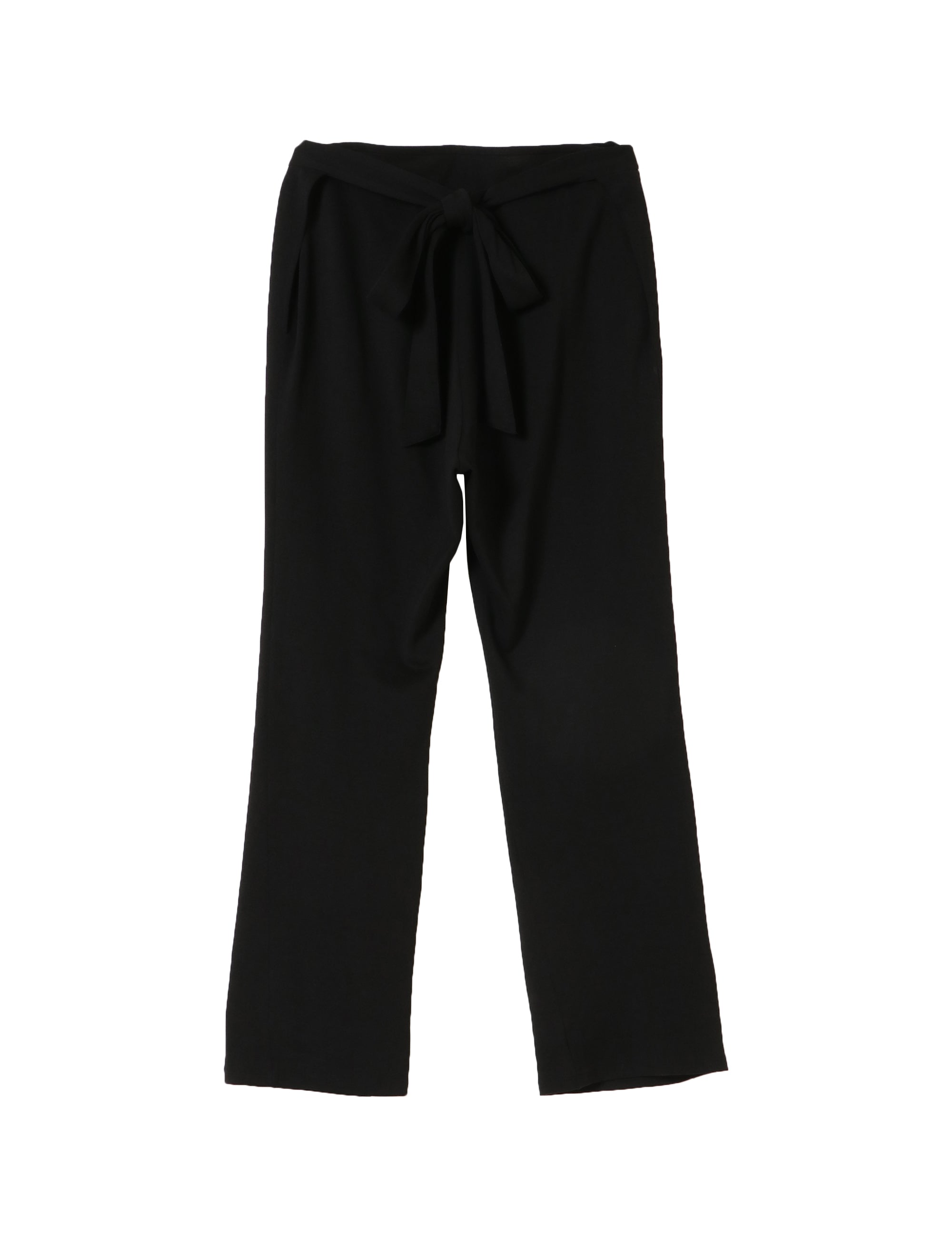 There are slits on both sides of the waist, reminiscent of a hakama, and a thin belt is attached from the back and a thick belt is attached from the front, so you can freely change the position and way of tying to change the look. Since the waist is not fixed, you can freely wear it high or low on the waist, and the silhouette can be changed, so it is a slit pants that can be worn for everyday wear.