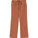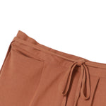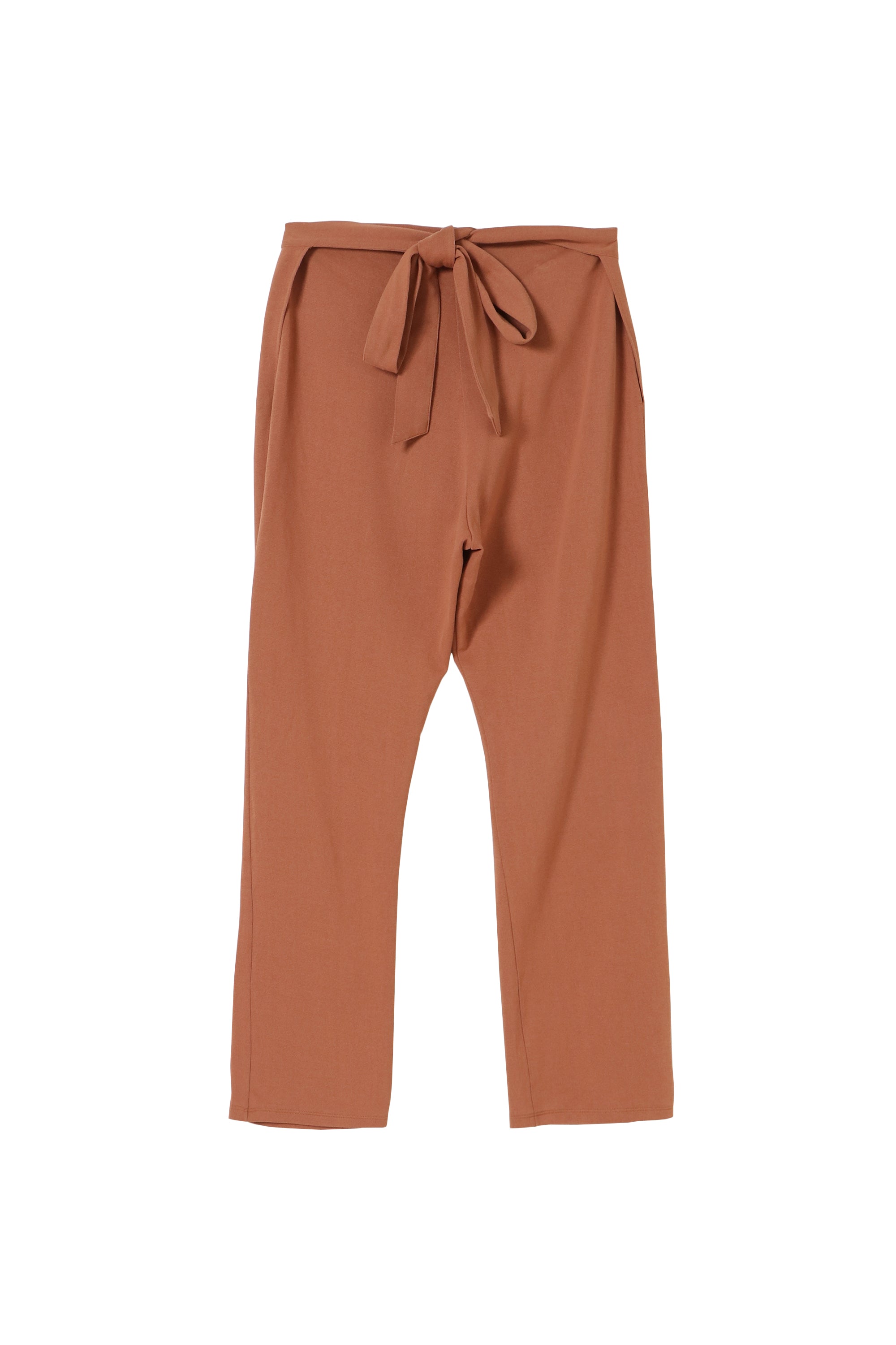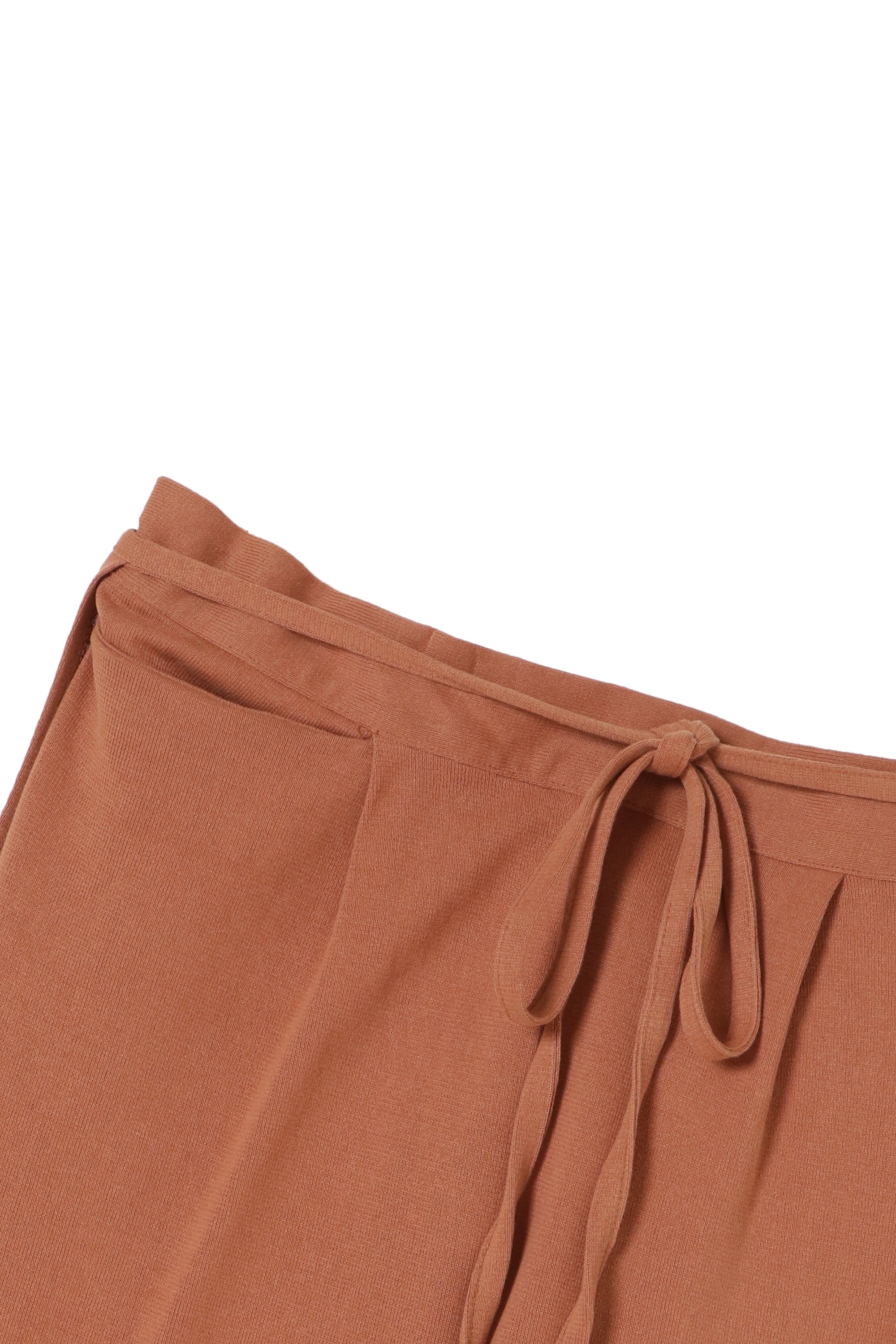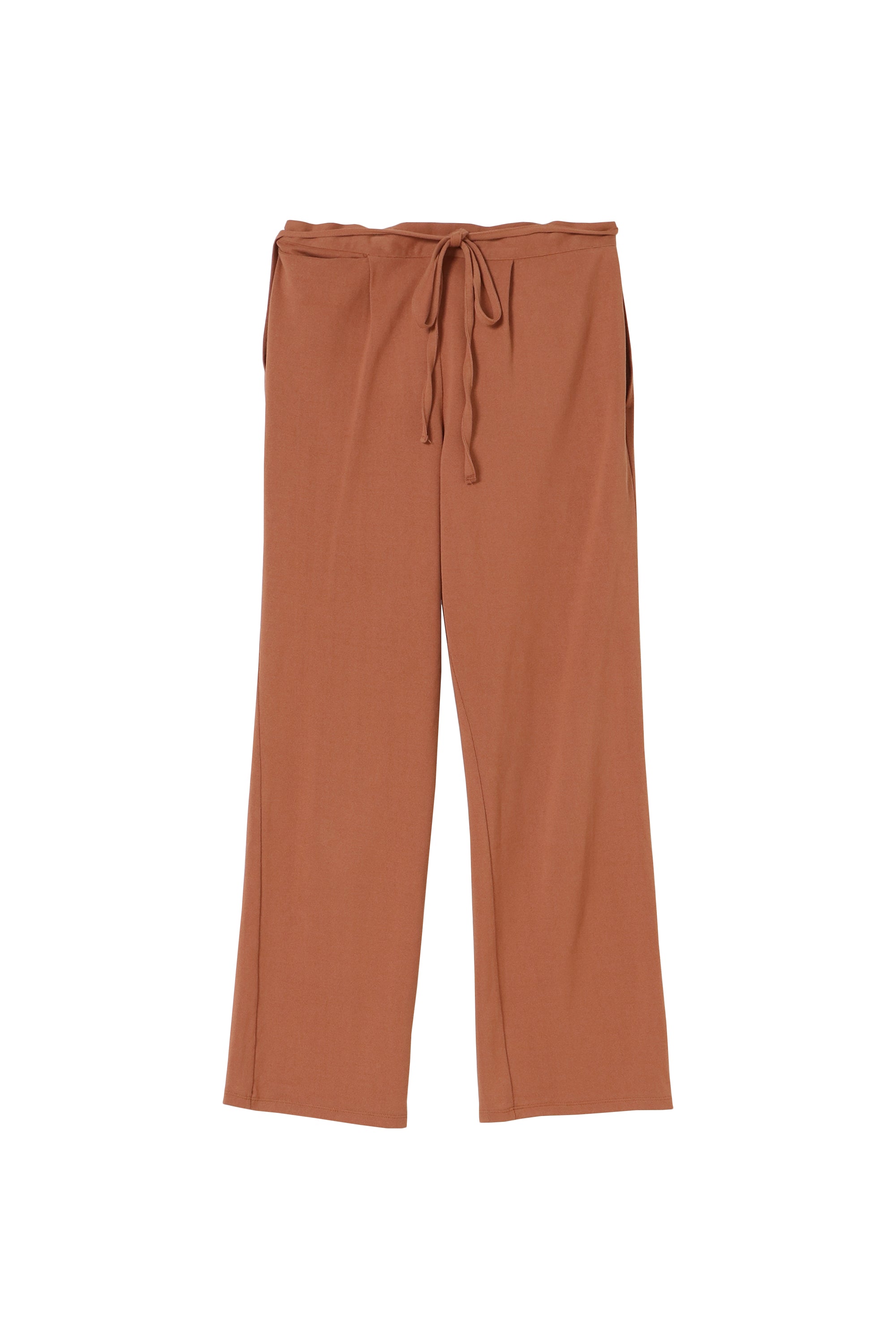 There are slits on both sides of the waist, reminiscent of a hakama, and a thin belt is attached from the back and a thick belt is attached from the front, so you can freely change the position and way of tying to change the look. Since the waist is not fixed, you can freely wear it high or low on the waist, and the silhouette can be changed, so it is a slit pants that can be worn for everyday wear.