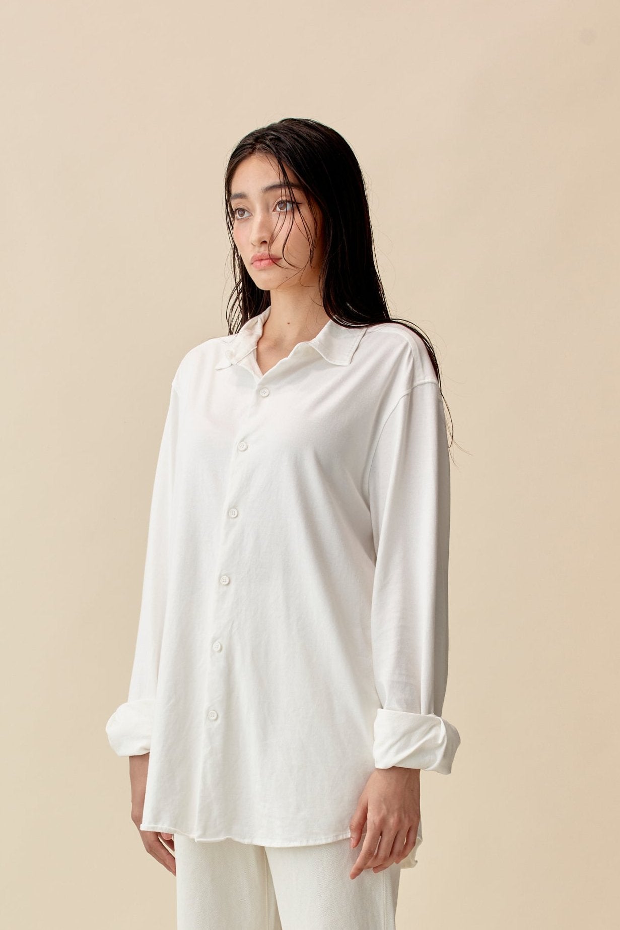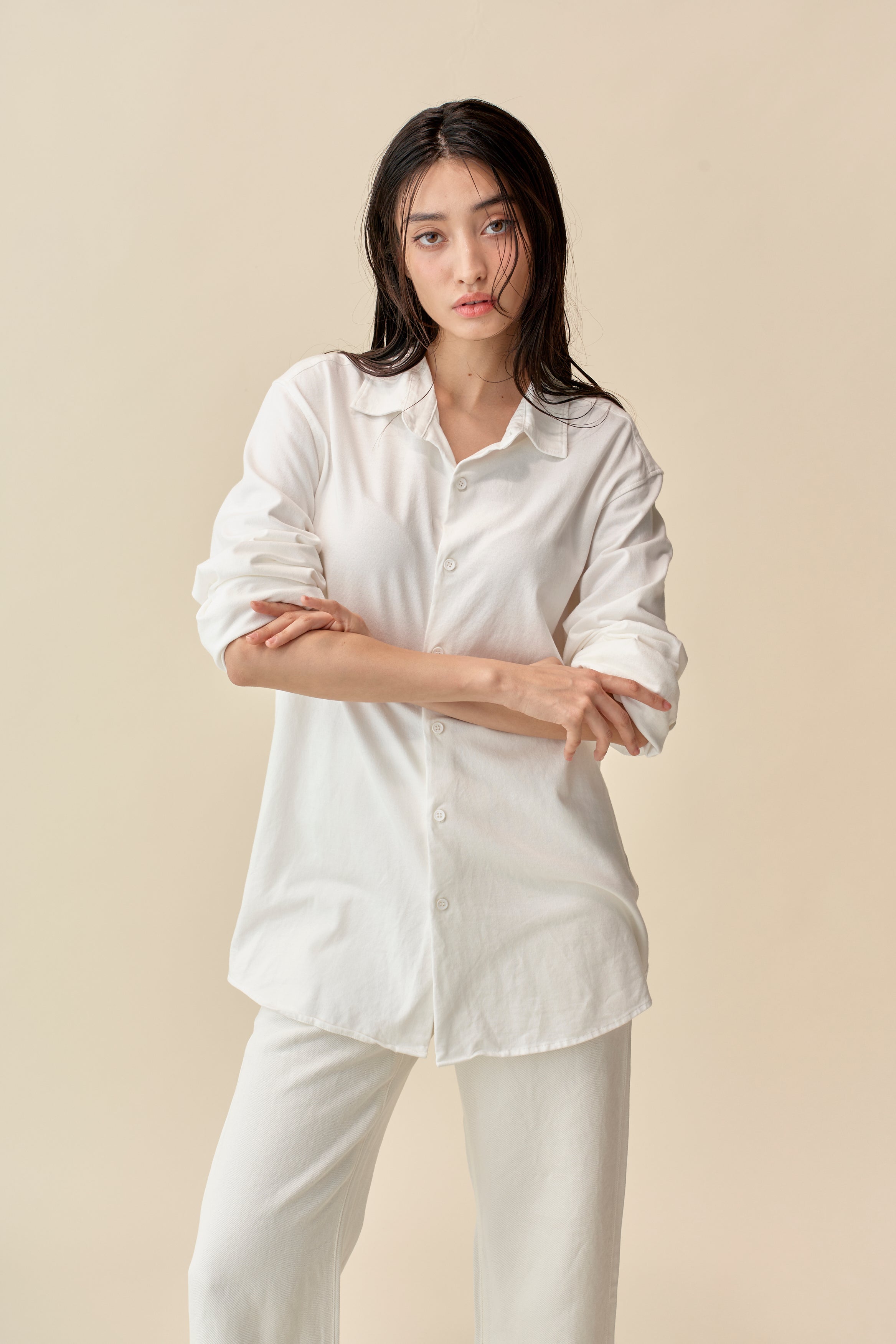 抗菌、消臭、UVカット、通気性、速乾性に優れている和紙とコットンを混紡したリラックスフィットのシンプルなシャツです。ユニセックス展開。ポケットを排除したミニマムなデザインで、幅広いスタイリングにマッチします。