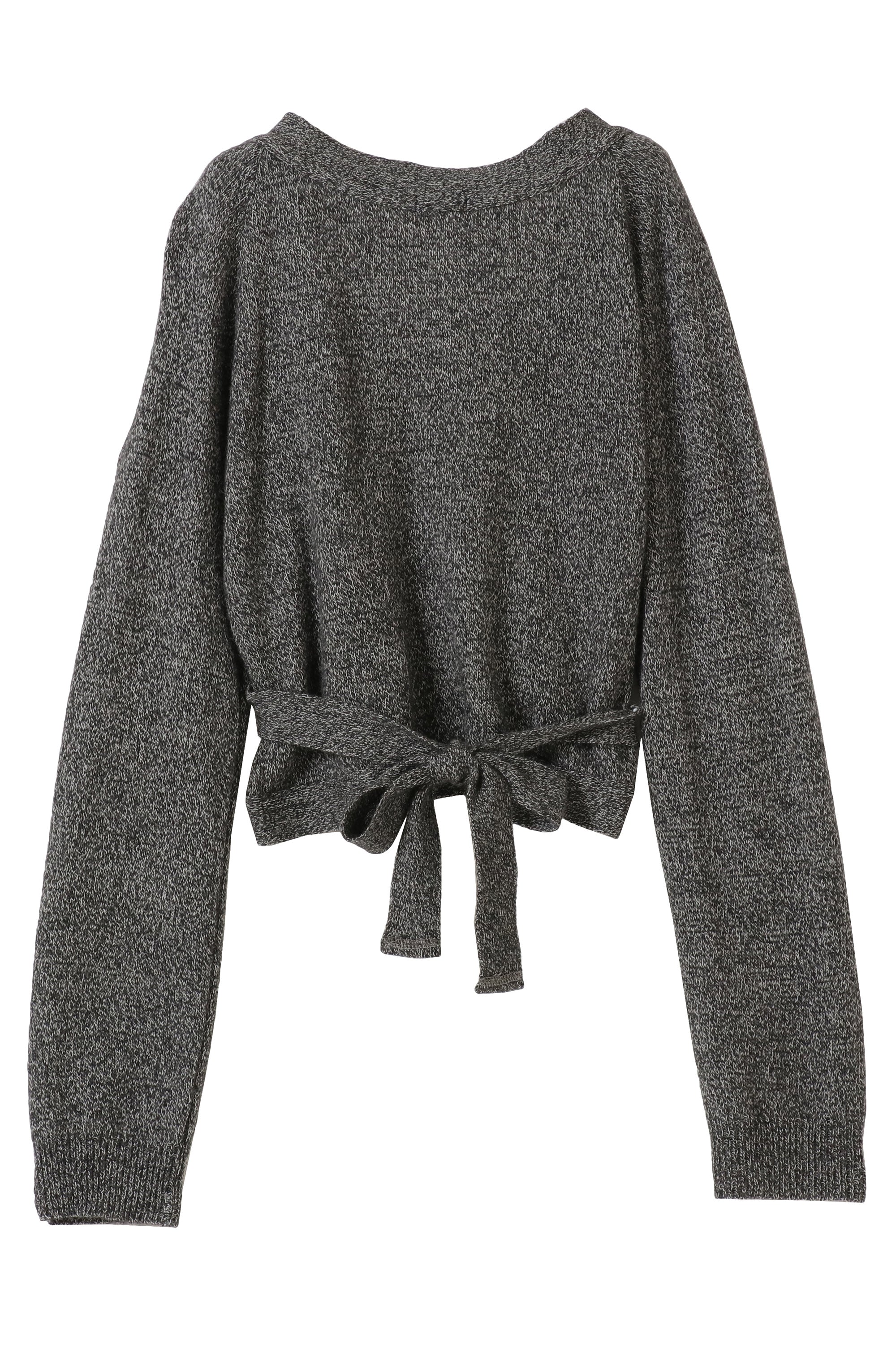 ウエストのタイで留めるラップスタイルに仕上げています。