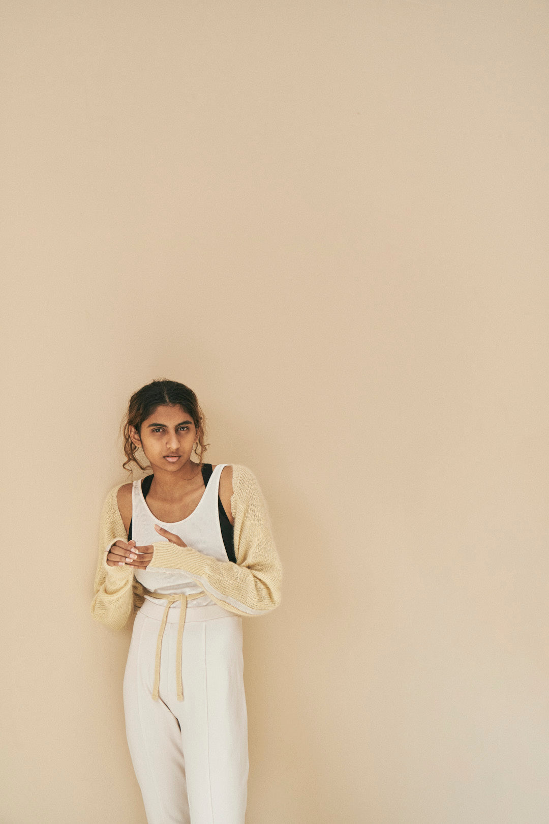 同時にそのスリットには中に着たタンクトップを袖の上から着用可能にしてくれます。アレンジ力の高いアイテムになります。