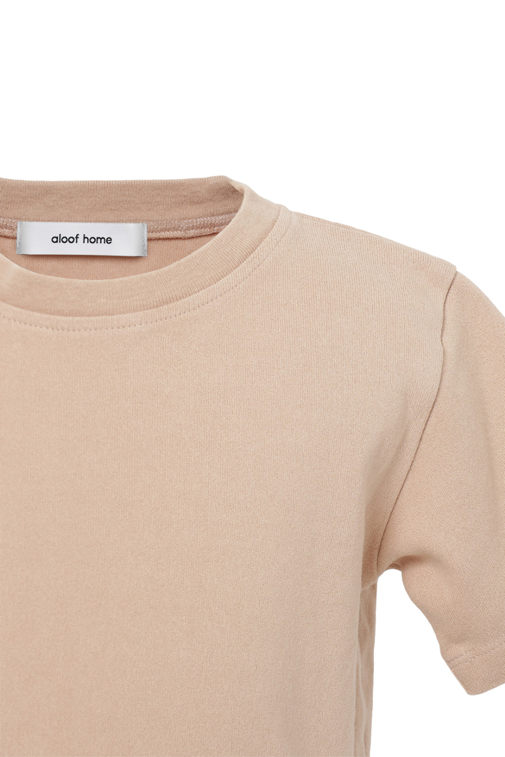 和紙コットン クルーネック Tシャツ-Pink Beige