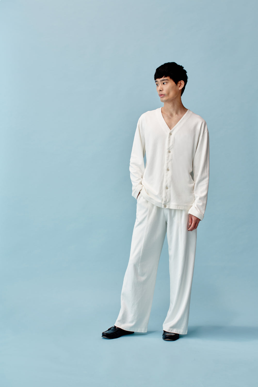 和紙コットン ワイドパンツ-Off White