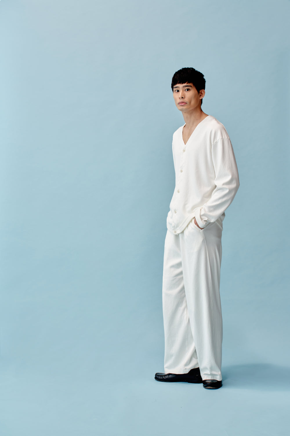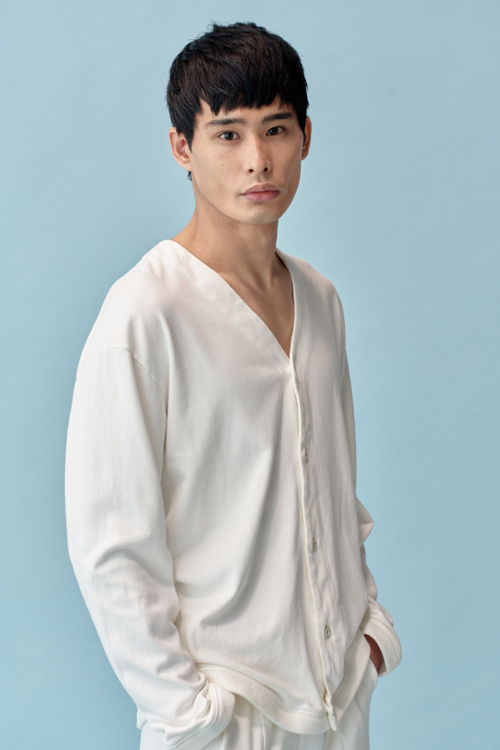 抗菌、消臭、UVカット、通気性、速乾性に優れている和紙とコットンを混紡した、柔らかく重厚感のあるカーディガンです。自宅からワンマイルのお出掛けまで活躍します。同素材の和紙コットンワイドパンツと組み合わせてお楽しみください。
