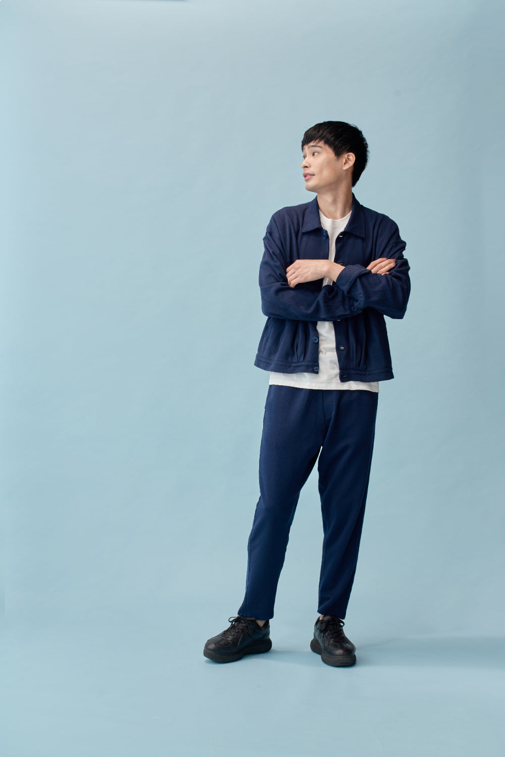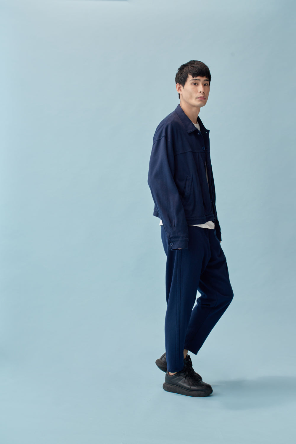 和紙コットン リラックス ジャケット(UNISEX)-Navy