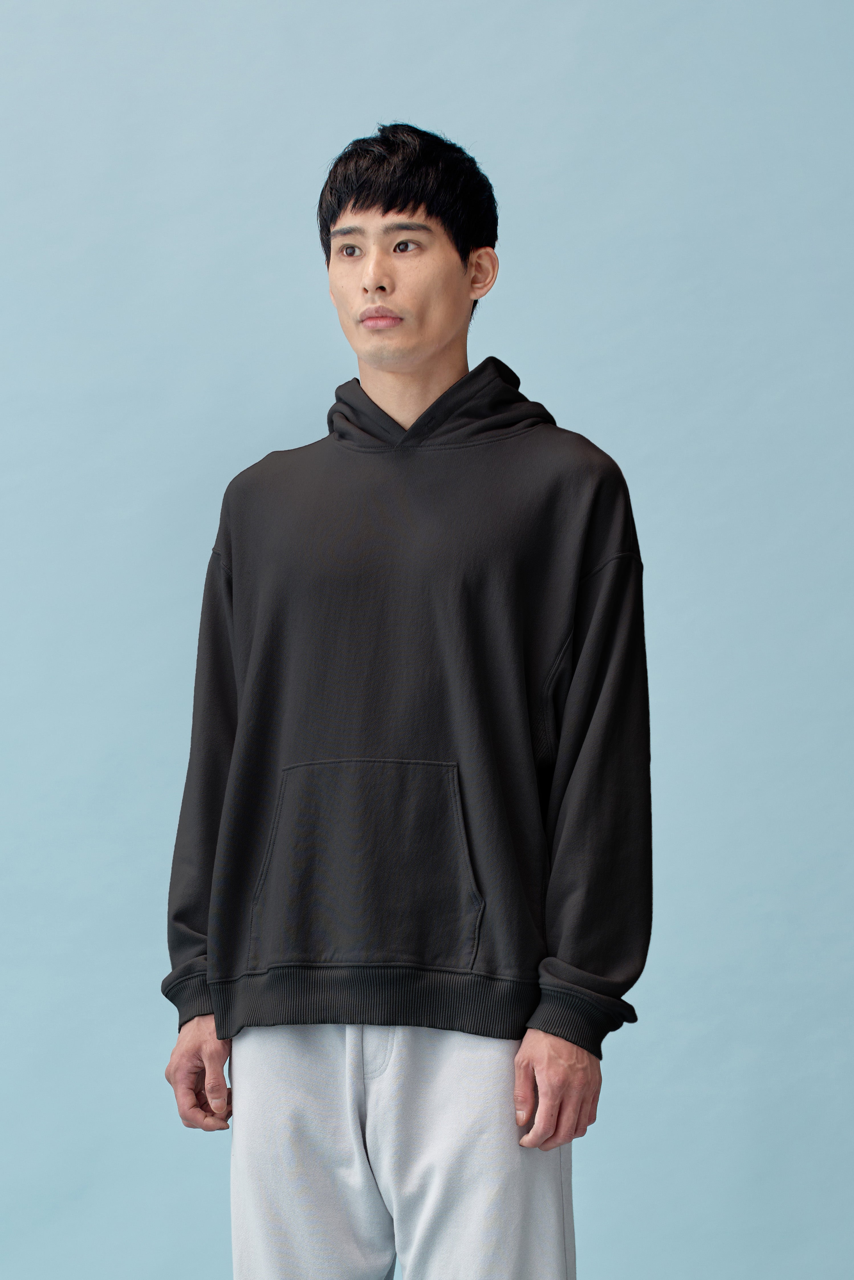 抗菌、消臭、UVカット、通気性、速乾性に優れている和紙とコットンを混紡したゆったりシルエットの動きやすいフーディです。オーバーサイズを楽しみたい女性にもおすすめです。