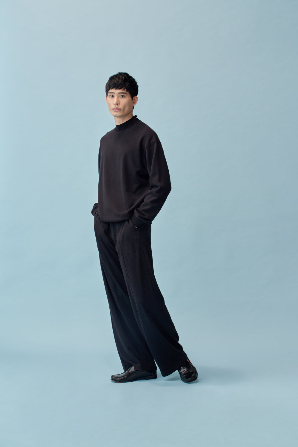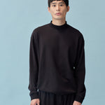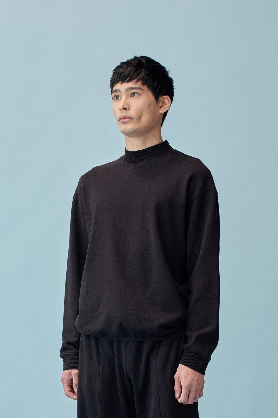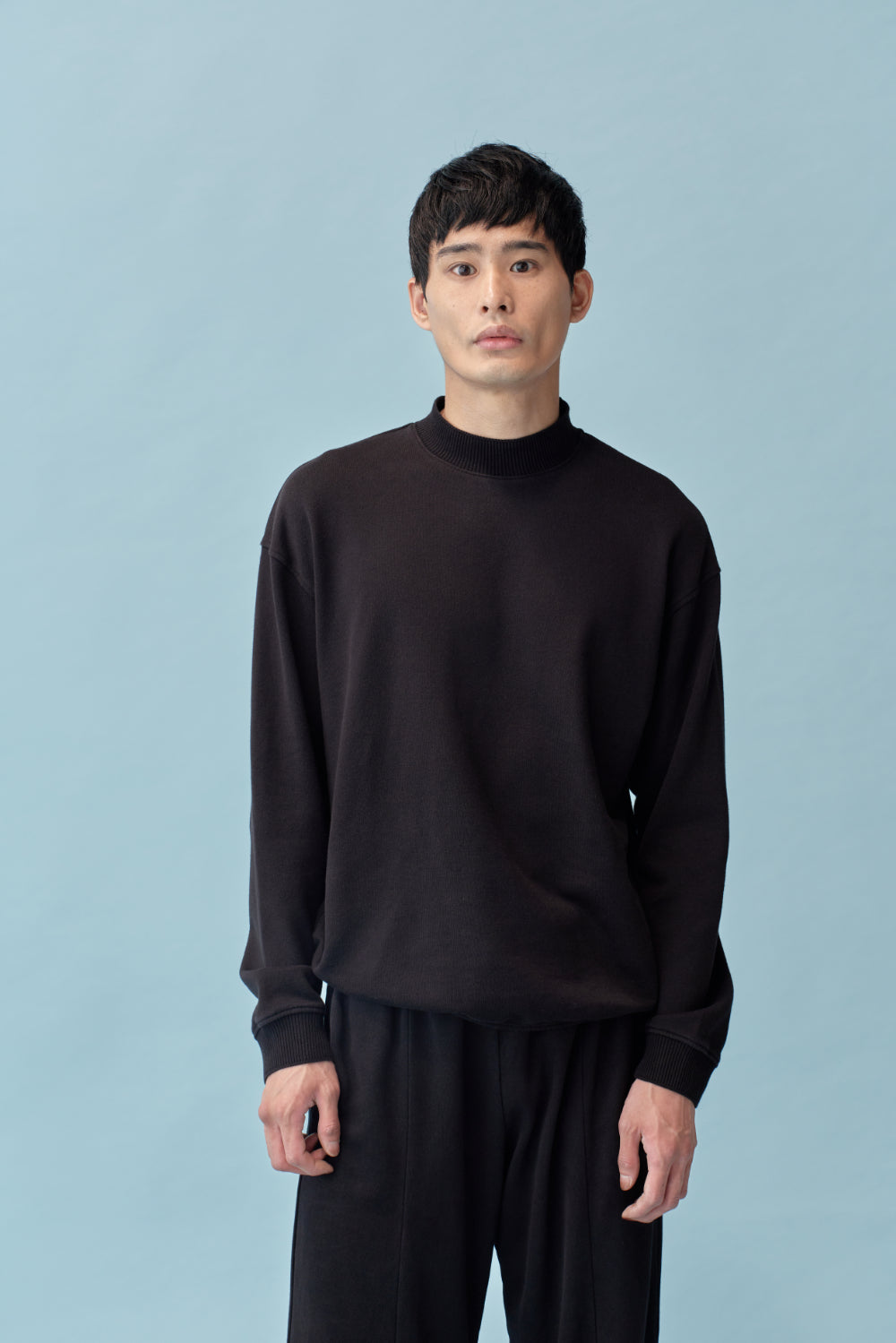 抗菌、消臭、UVカット、通気性、速乾性に優れている和紙とコットンを混紡したリラックスフィットのトレーナーです。首元はデザインのアクセントとなる太めのリブを使用。注目のモックネック感覚が楽しめる旬のデザインです。