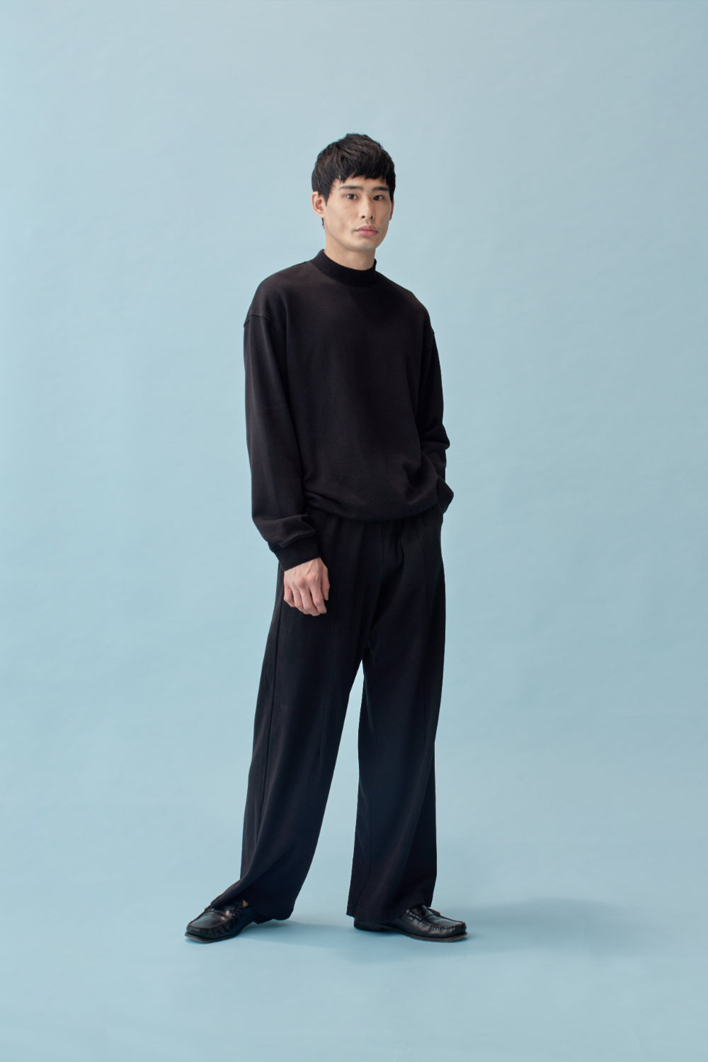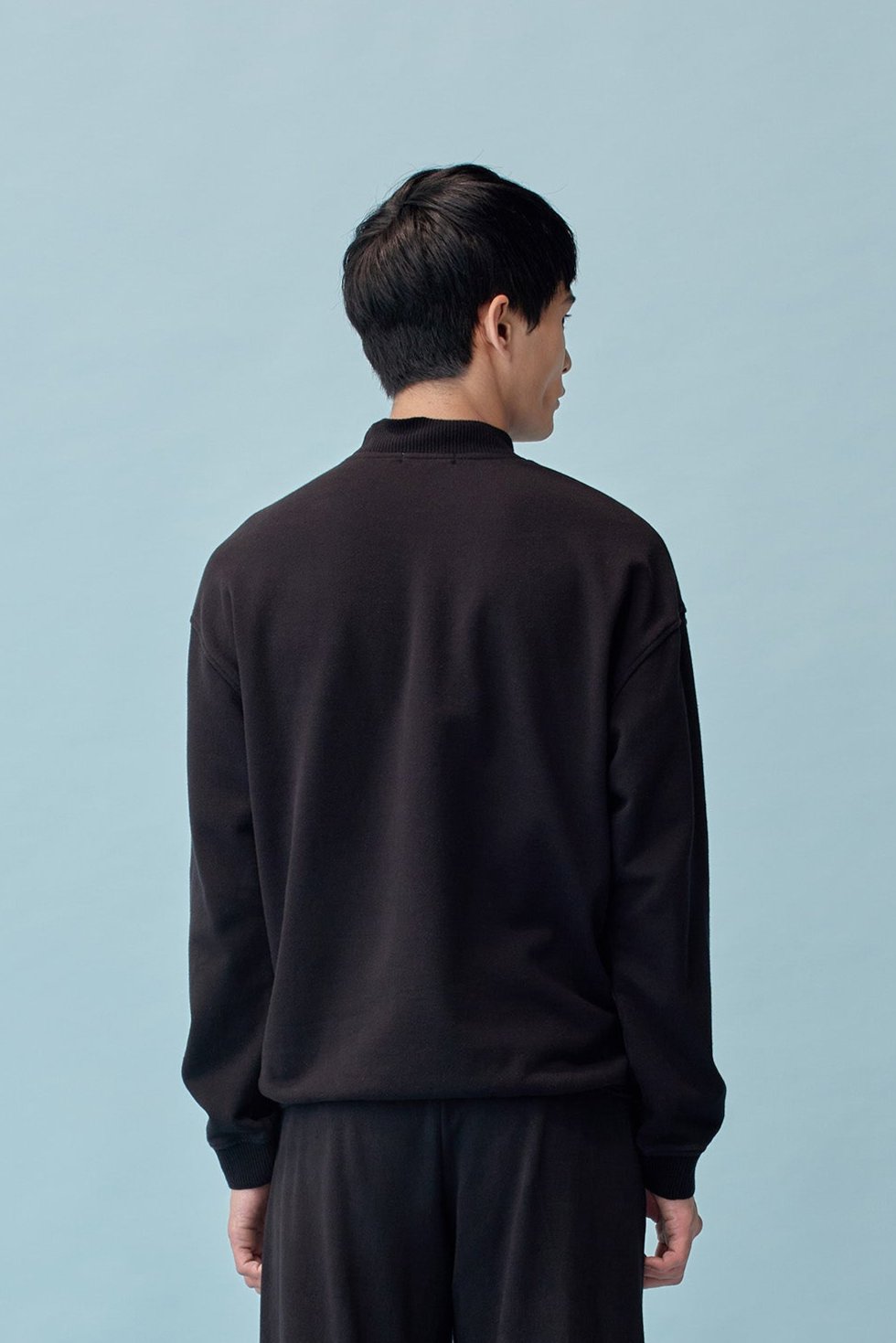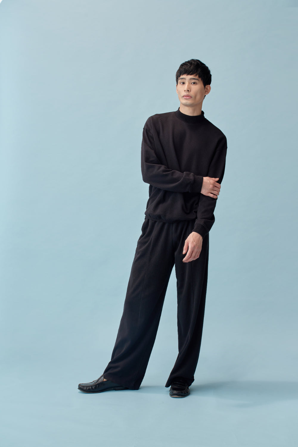 抗菌、消臭、UVカット、通気性、速乾性に優れている和紙とコットンを混紡したリラックスフィットのトレーナーです。首元はデザインのアクセントとなる太めのリブを使用。注目のモックネック感覚が楽しめる旬のデザインです。