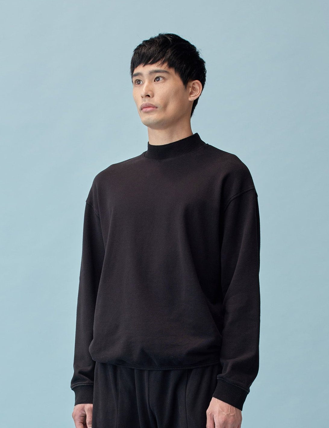 抗菌、消臭、UVカット、通気性、速乾性に優れている和紙とコットンを混紡したリラックスフィットのトレーナーです。首元はデザインのアクセントとなる太めのリブを使用。注目のモックネック感覚が楽しめる旬のデザインです。