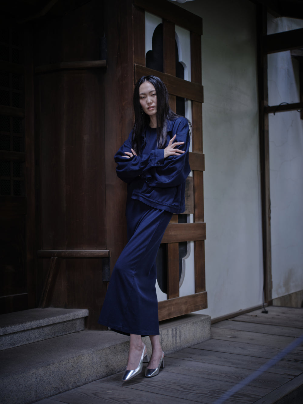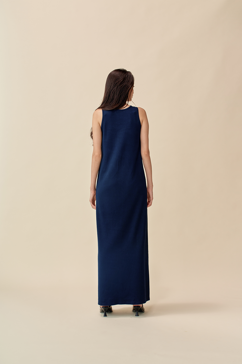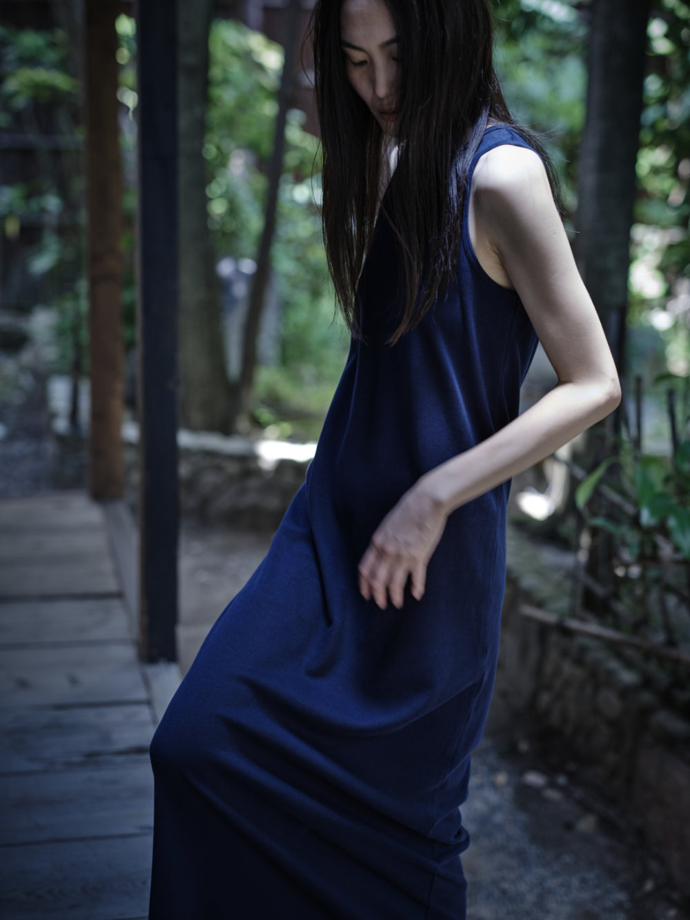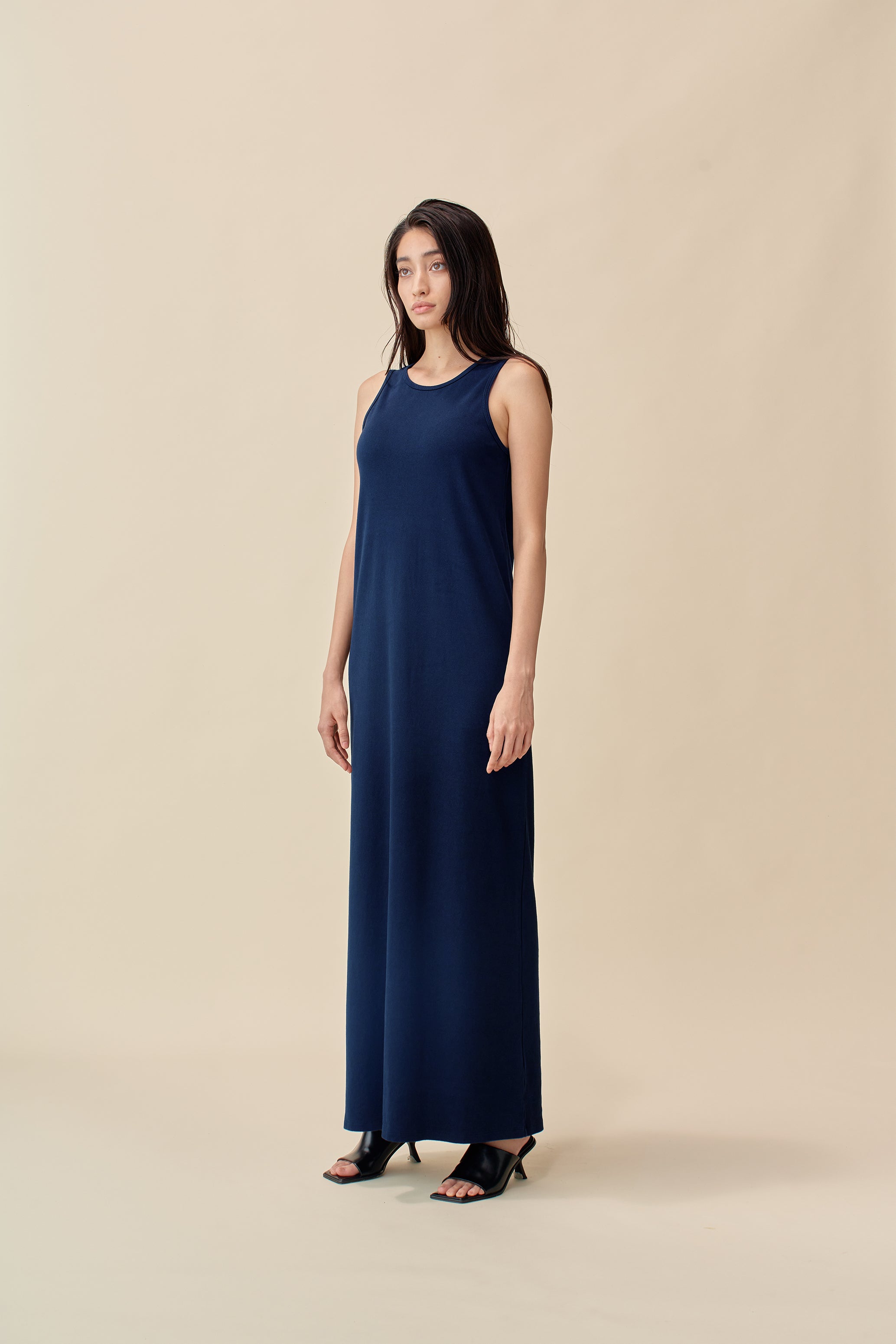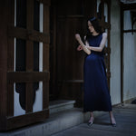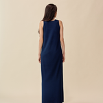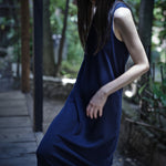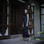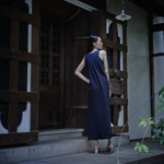 和紙コットン マキシ ドレス-Navy