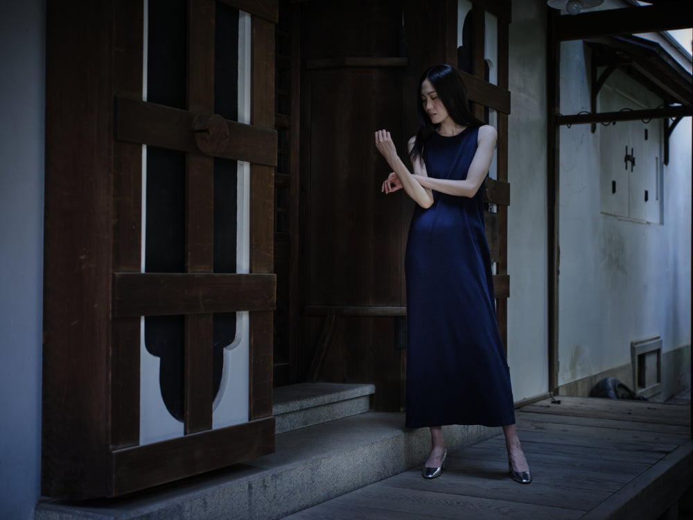 抗菌、消臭、UVカット、通気性、速乾性に優れている和紙とコットンを混紡したすっきりとしたフィットのノンスリーブマキシドレス。シンプルなデザインですがシルエットが美しく、カジュアルな雰囲気からドレッシーな着こなしまで楽しめる幅広い世代に方々におすすめのワンピースです。