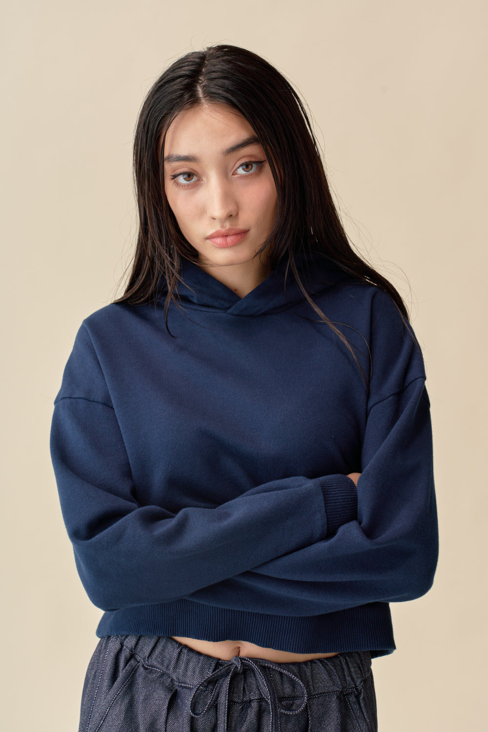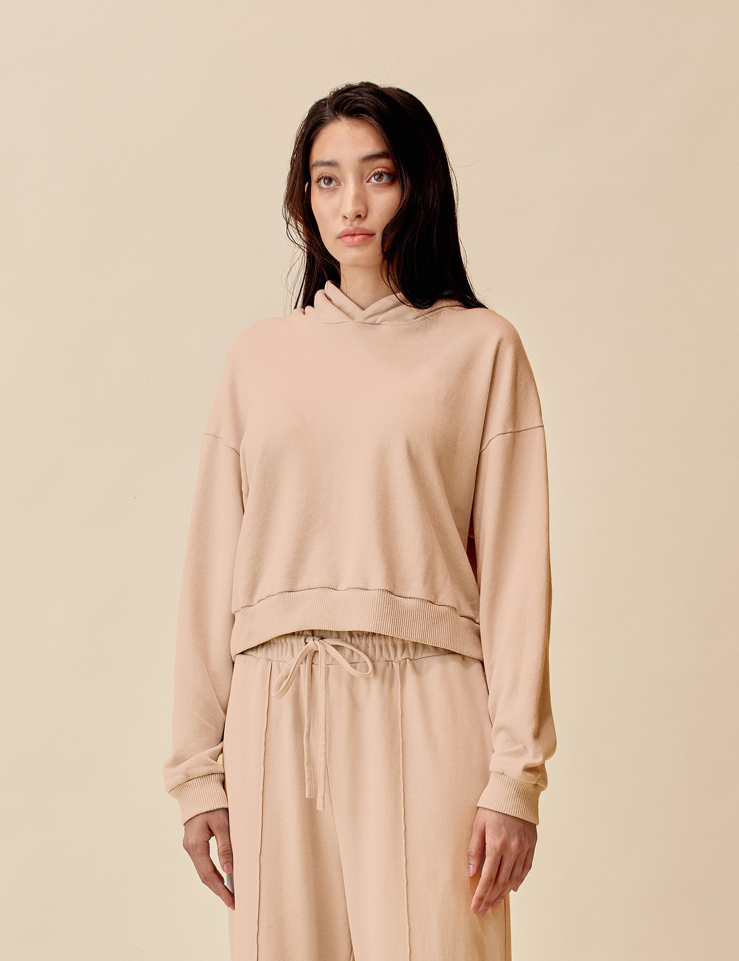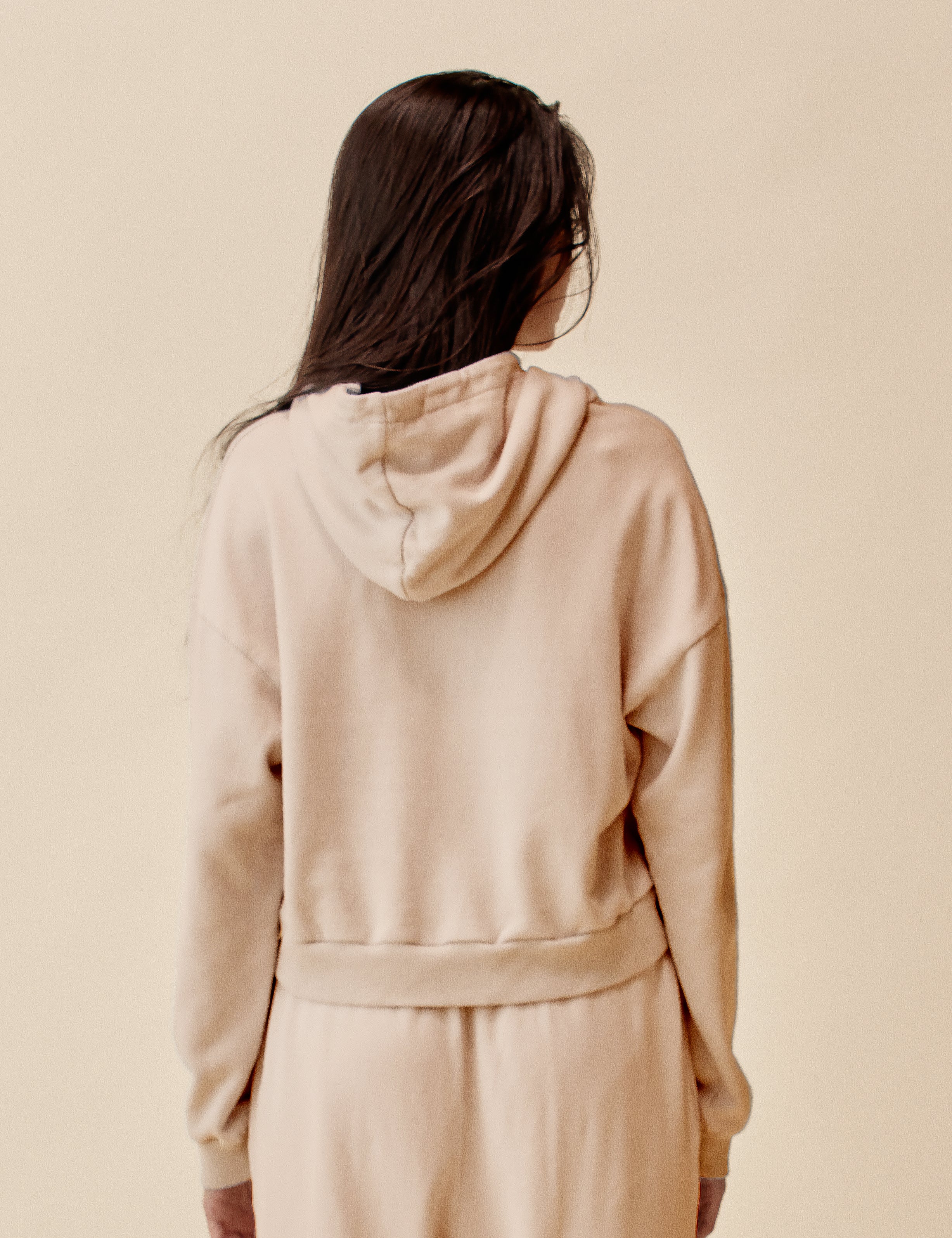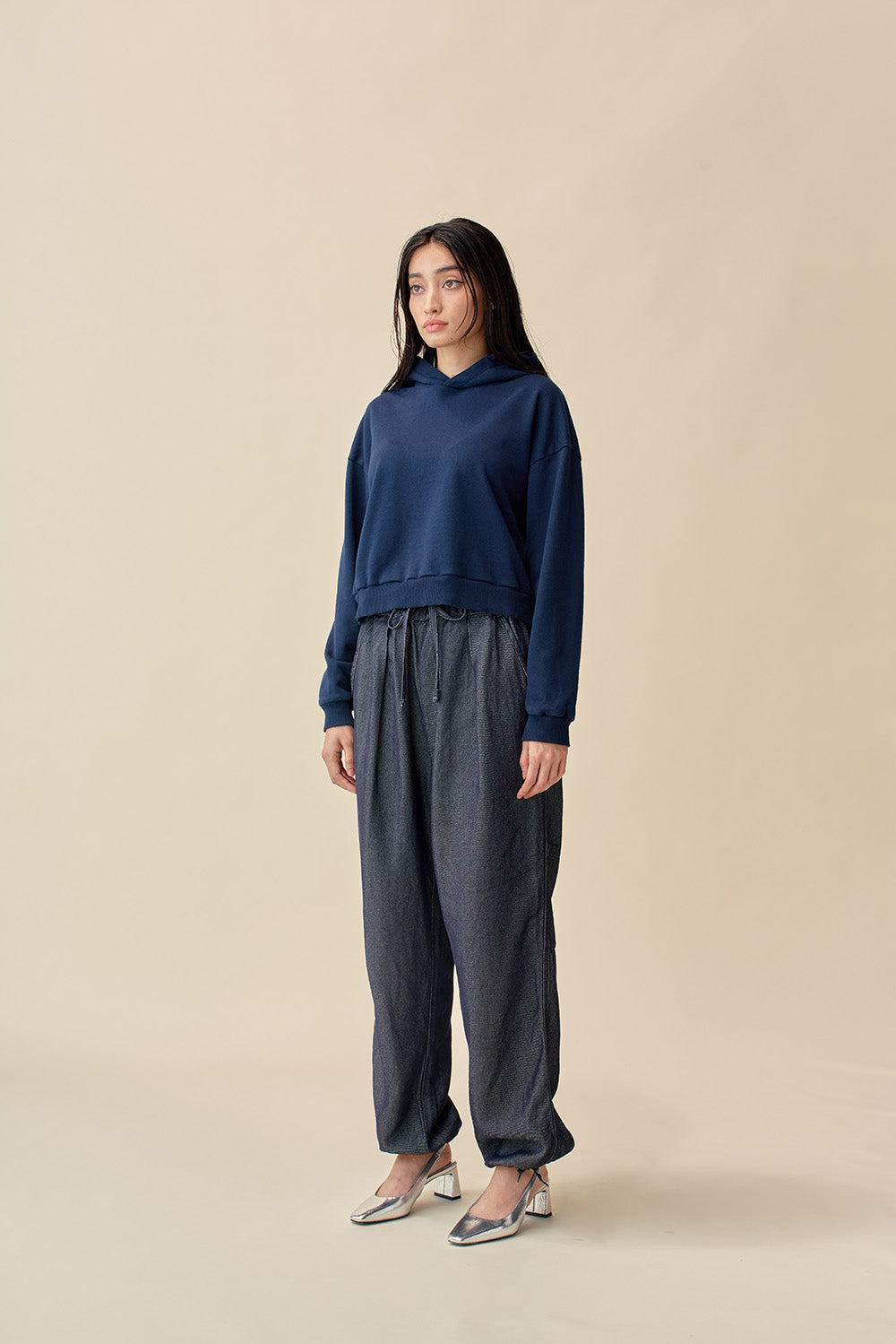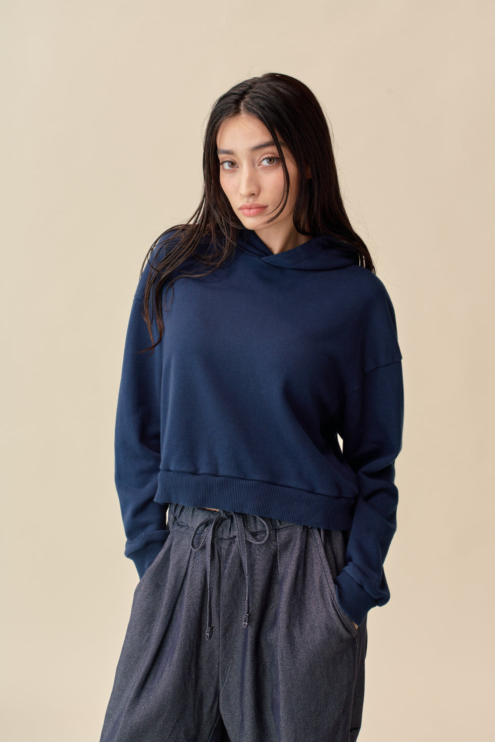 抗菌、消臭、UVカット、通気性、速乾性に優れている和紙とコットンを混紡した素材を使用。中央のポケットを排除し、あえて着丈の短いクロップ丈を採用することで、モードな着こなしにも映えるスタイリッシュさをプラスしました。