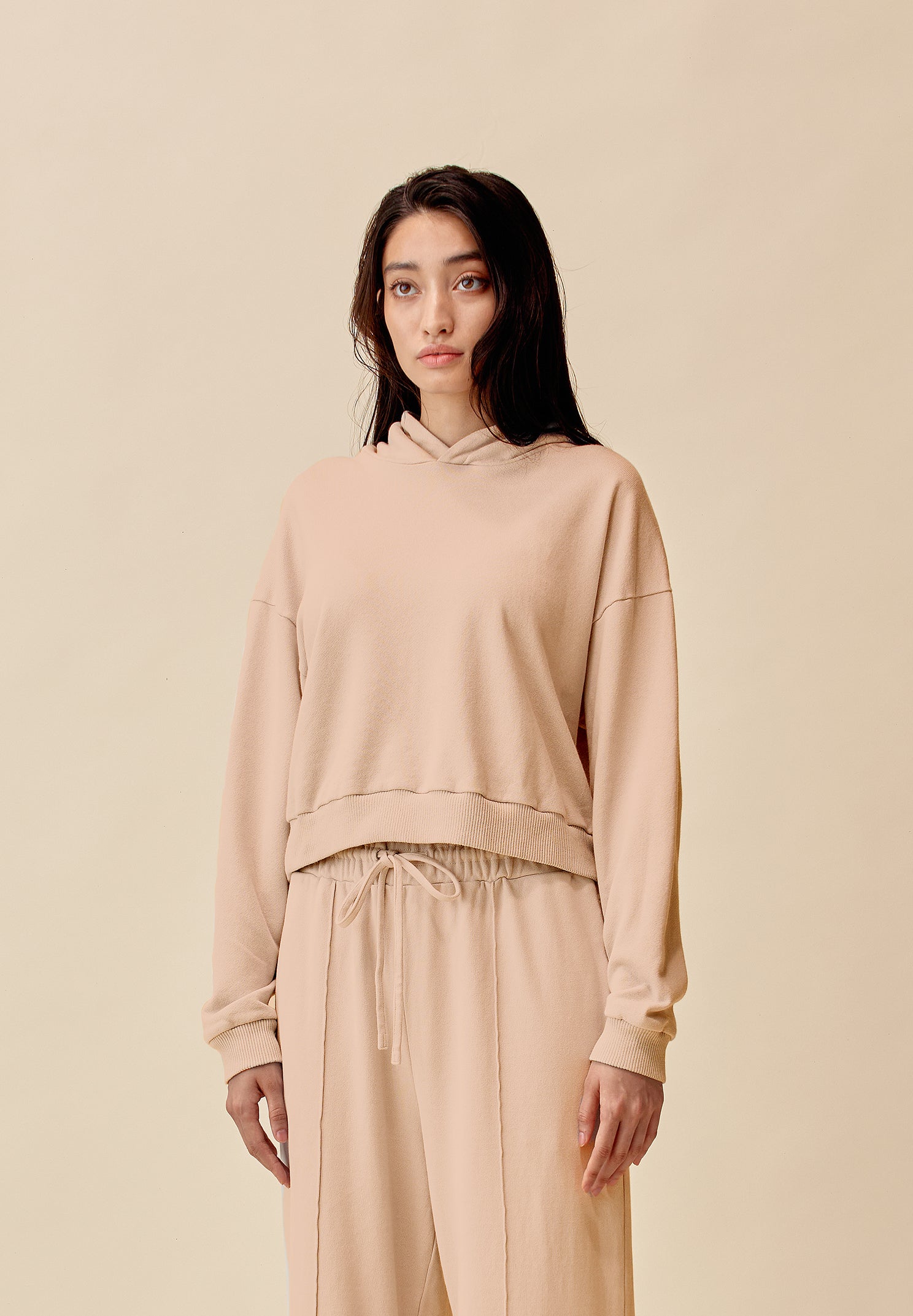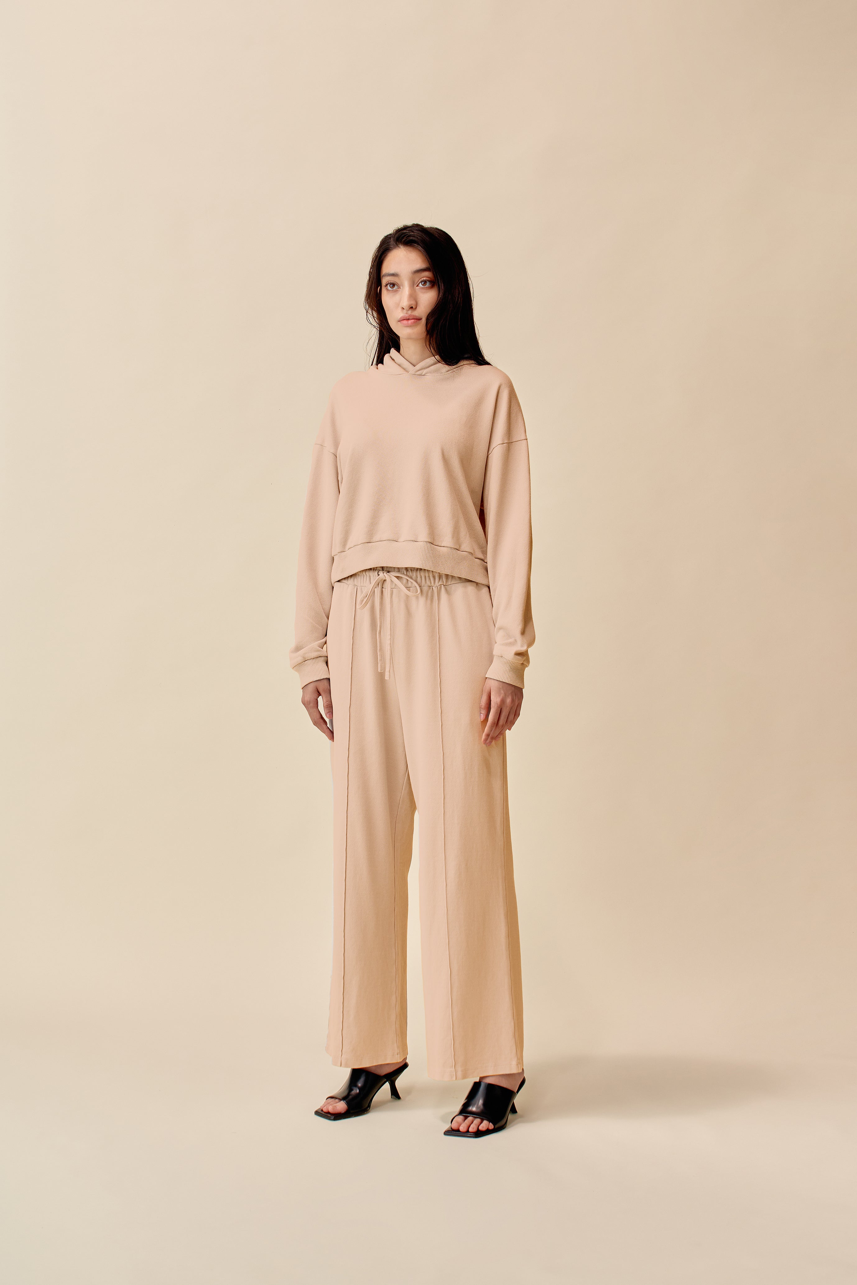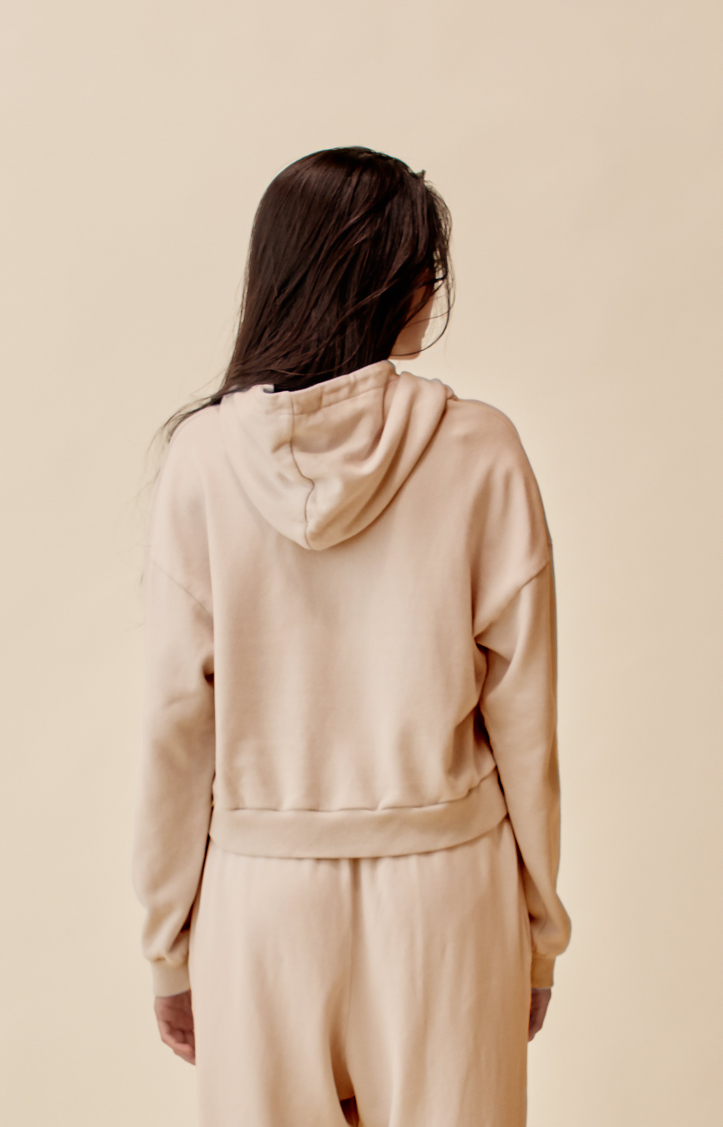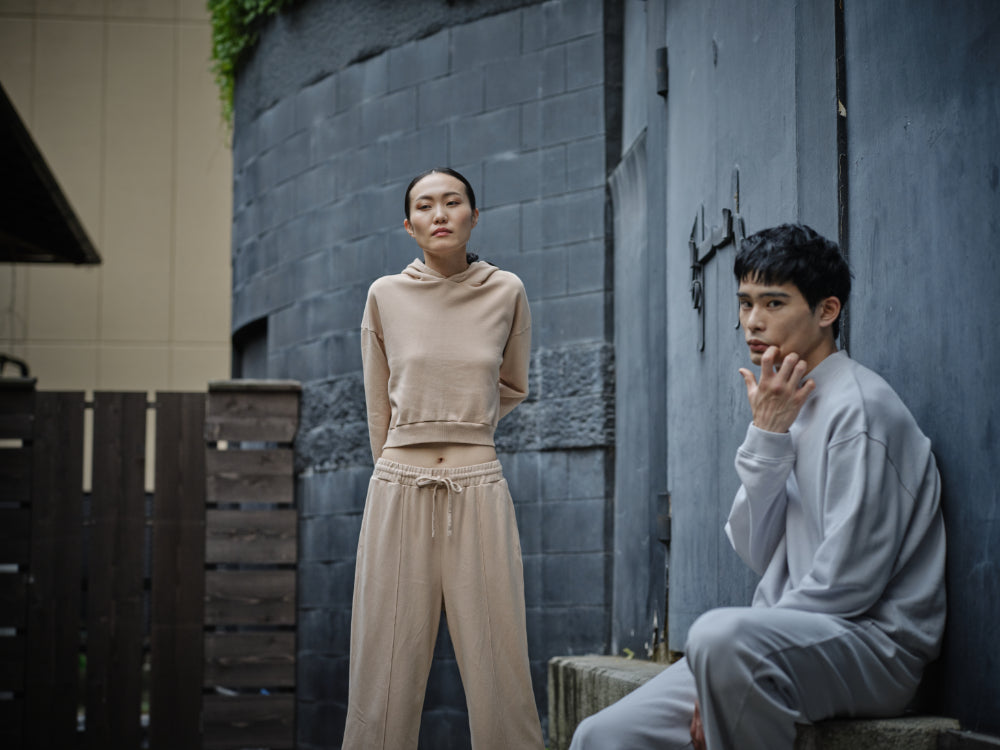 抗菌、消臭、UVカット、通気性、速乾性に優れている和紙とコットンを混紡した素材を使用。中央のポケットを排除し、あえて着丈の短いクロップ丈を採用することで、モードな着こなしにも映えるスタイリッシュさをプラスしました。